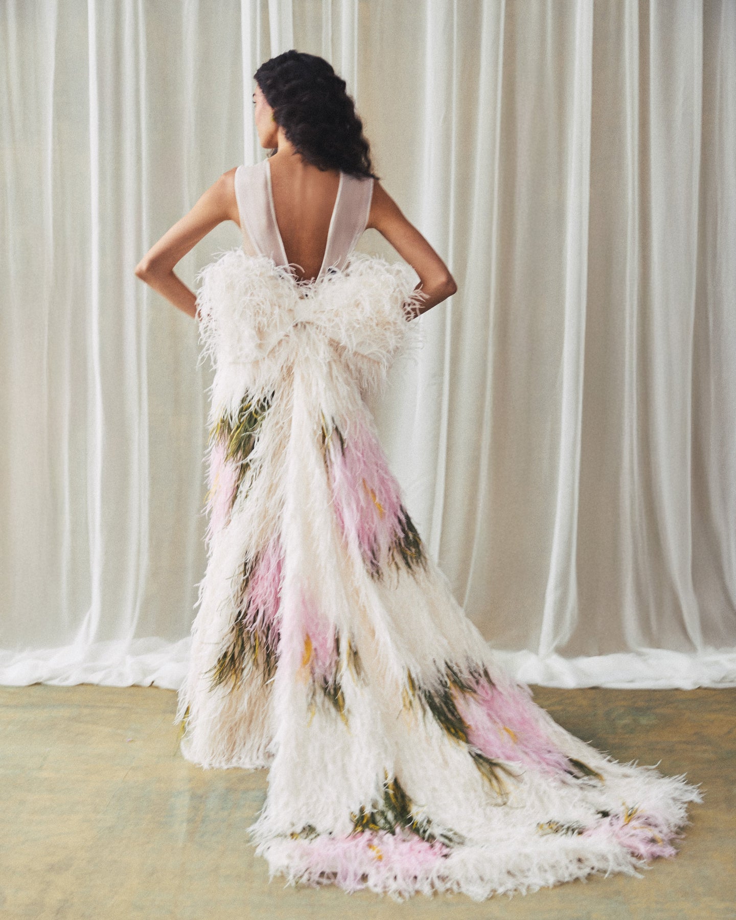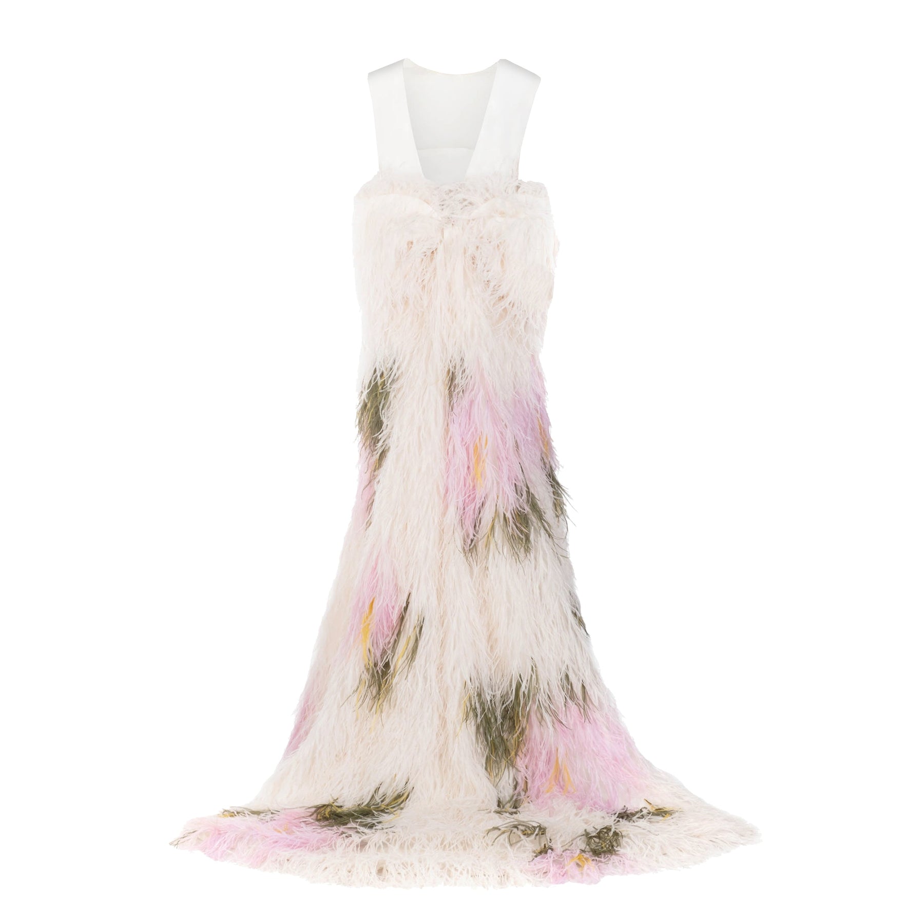 Eliza Gown in Abstract Floral Ostrich Feathers