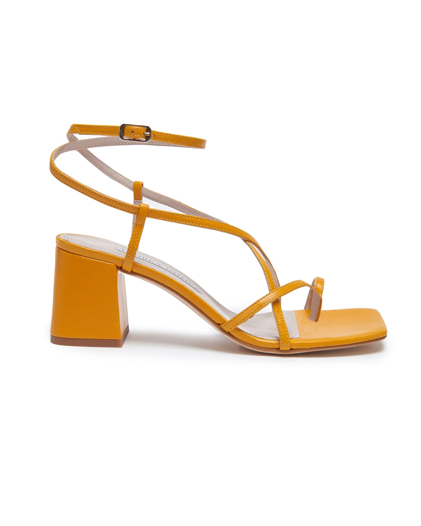 Get ready to dance the night away with Ana Yellow's "barely there" straps! With their adjustable ankle wrap and toe ring, you'll never have to worry about slipping out of these stylish shoes. Plus, the square toe and 65mm covered block heel will have you strutting in comfort all day (and night) long. And did we mention the blush kidskin lining and signature blush leather sole? These shoes not only look good, but they feel good too. Slip into a pair of Ana Yellow's and you'll never want to take them off!
