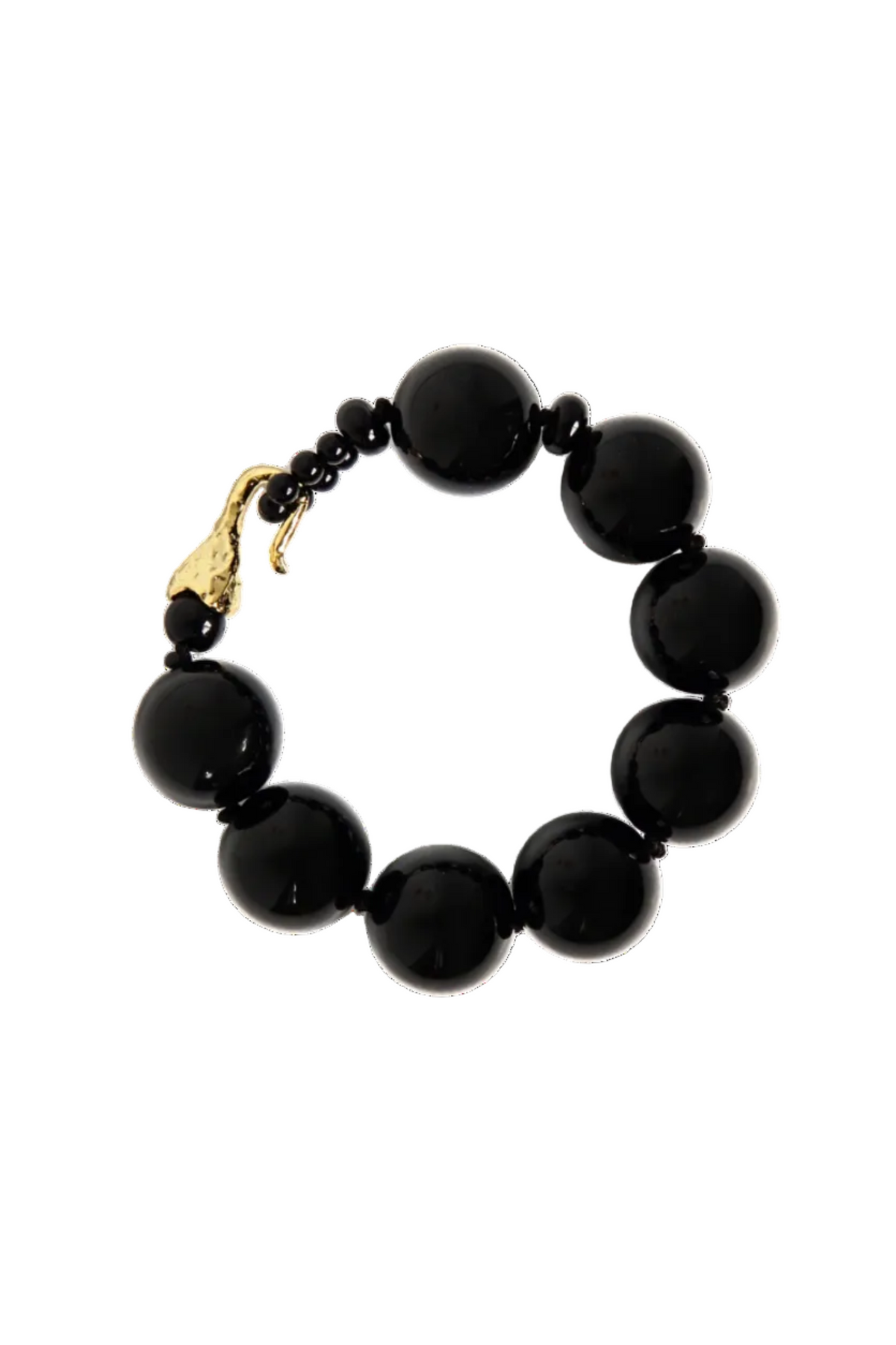 Whether you're toasting to new beginnings at a New Year's celebration or adding edge to your seasonal wardrobe, the black onyx beads and our signature hook closure in this bracelet capture the elegance and anticipation of the darkest, most enchanting hours of winter.