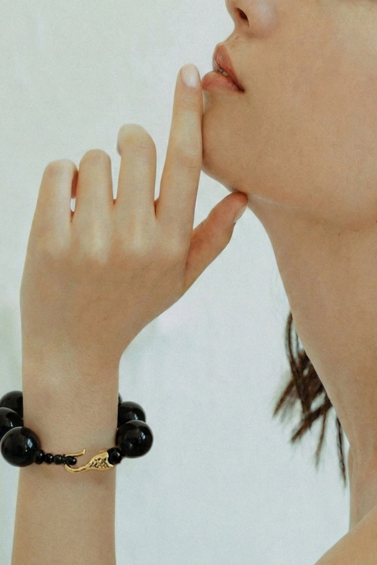 Materials: Meticulously handmade in our studio with Black Onyx gembeads, brass closure heavily plated with 18k-Gold with e-coating to resist tarnishing, scratching, and discoloration for everyday wear.