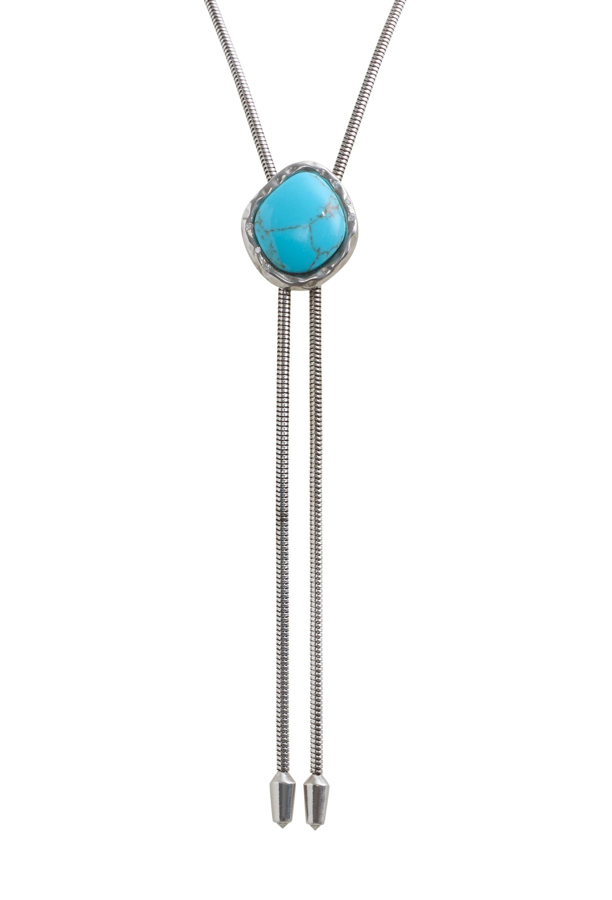 Rhodium-plated centerpiece and snake chain. Genuine turquoise cabochon stone.