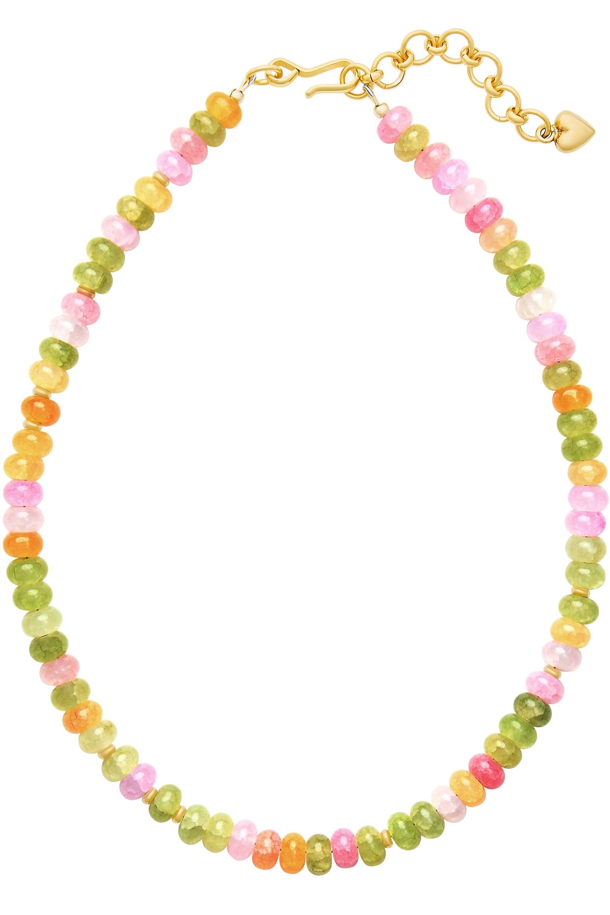 - A strand of semi-precious and glass rondelle beads and 24k antique gold plated slices
