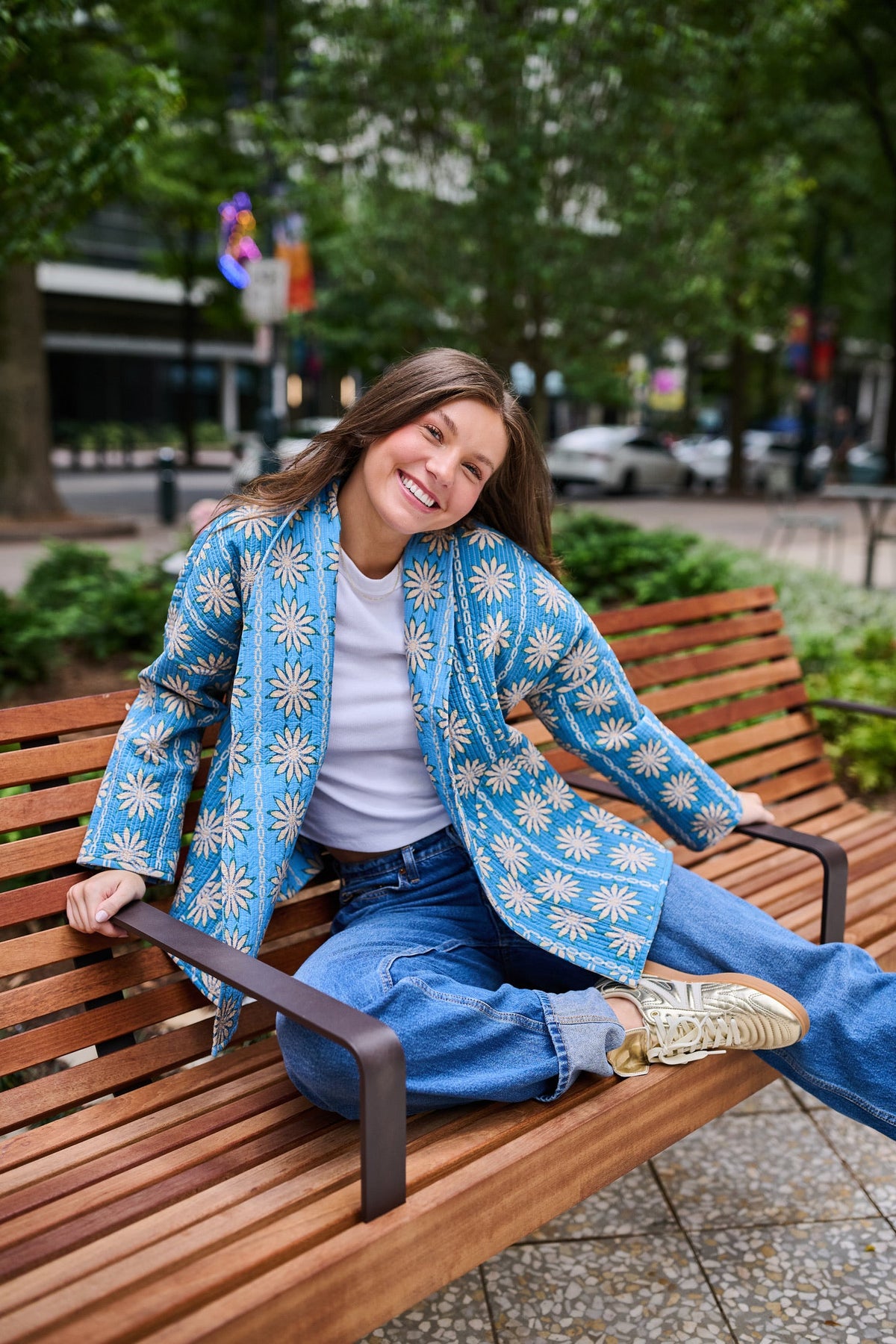 Double the print, double the fun. Crafted from soft cotton, our Allison Reversible Quilted Jacket is the perfect light layer to take you from fall through spring. With a relaxed, open-front silhouette, it’s designed for easy, throw-on-and-go styling. The roomy fit makes it ideal for layering over everything from chunky sweaters to slim fit turtlenecks, and with pockets on both sides, it’s as practical as it is fun. Fully reversible for two looks in one, this is a piece you’ll reach for again and again.