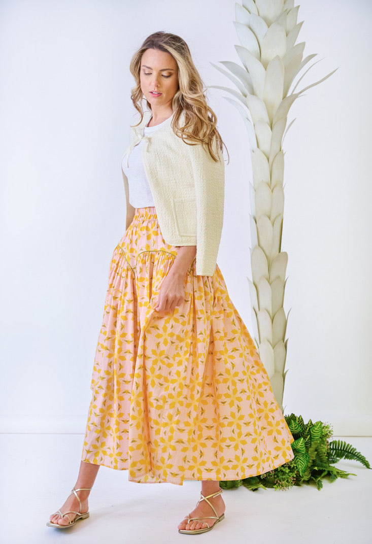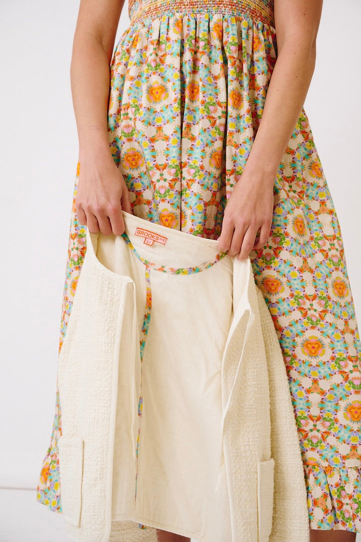 As timeless as she is wearable, our Rosy Jacket is an easy go-to for year round. Crafted in a dreamy off-white bouclé fabric, this vintage-inspired beauty pairs just as well with your classic whites and denim as it does with one of our print-punching maxi dresses. Finished with two front pockets and a tie closure, you can wear her as a regular jacket or draped over your shoulders for an "oo-la-la" appeal.