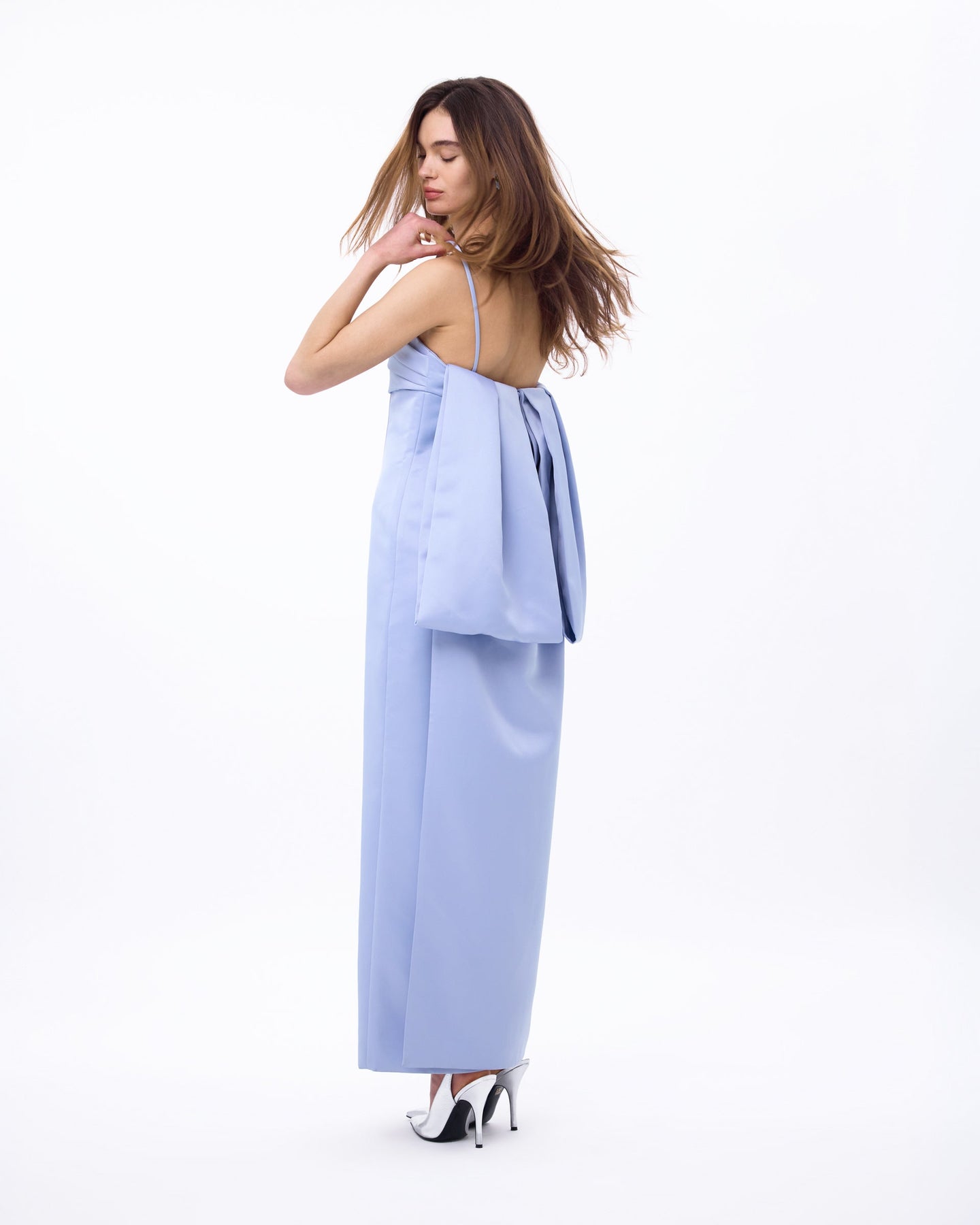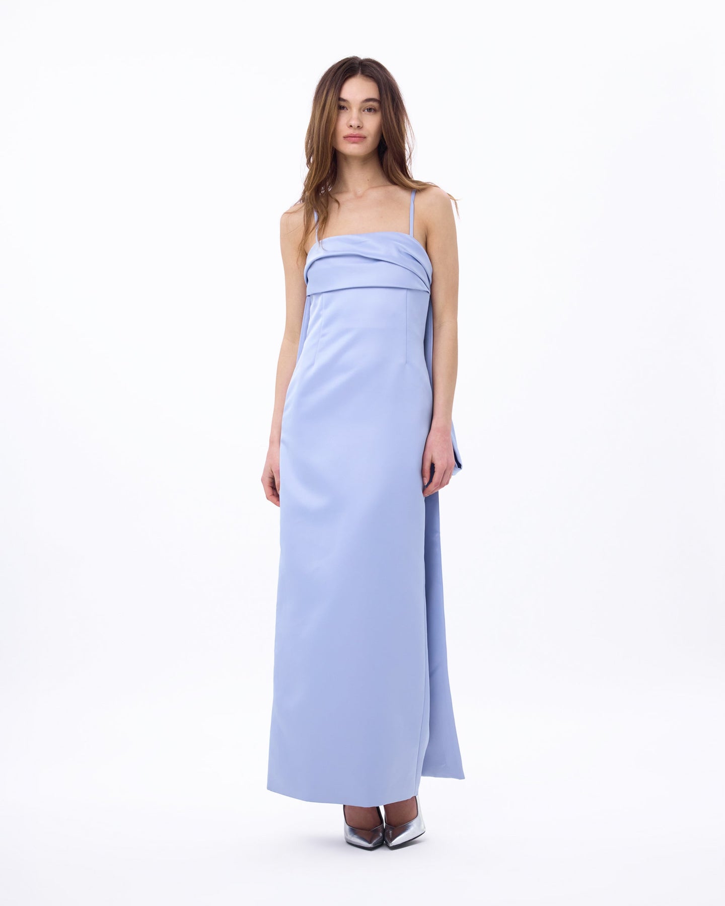 Utterly glamorous and glamorously dramatic, Cleo Gown makes sure she is the center of attention always. The older sister to Cleo Dress, Cleo Gown features a similar bodice draped bust line with a full length skirt and a modern sculptural train. She can be found at Bar Marmont each evening.