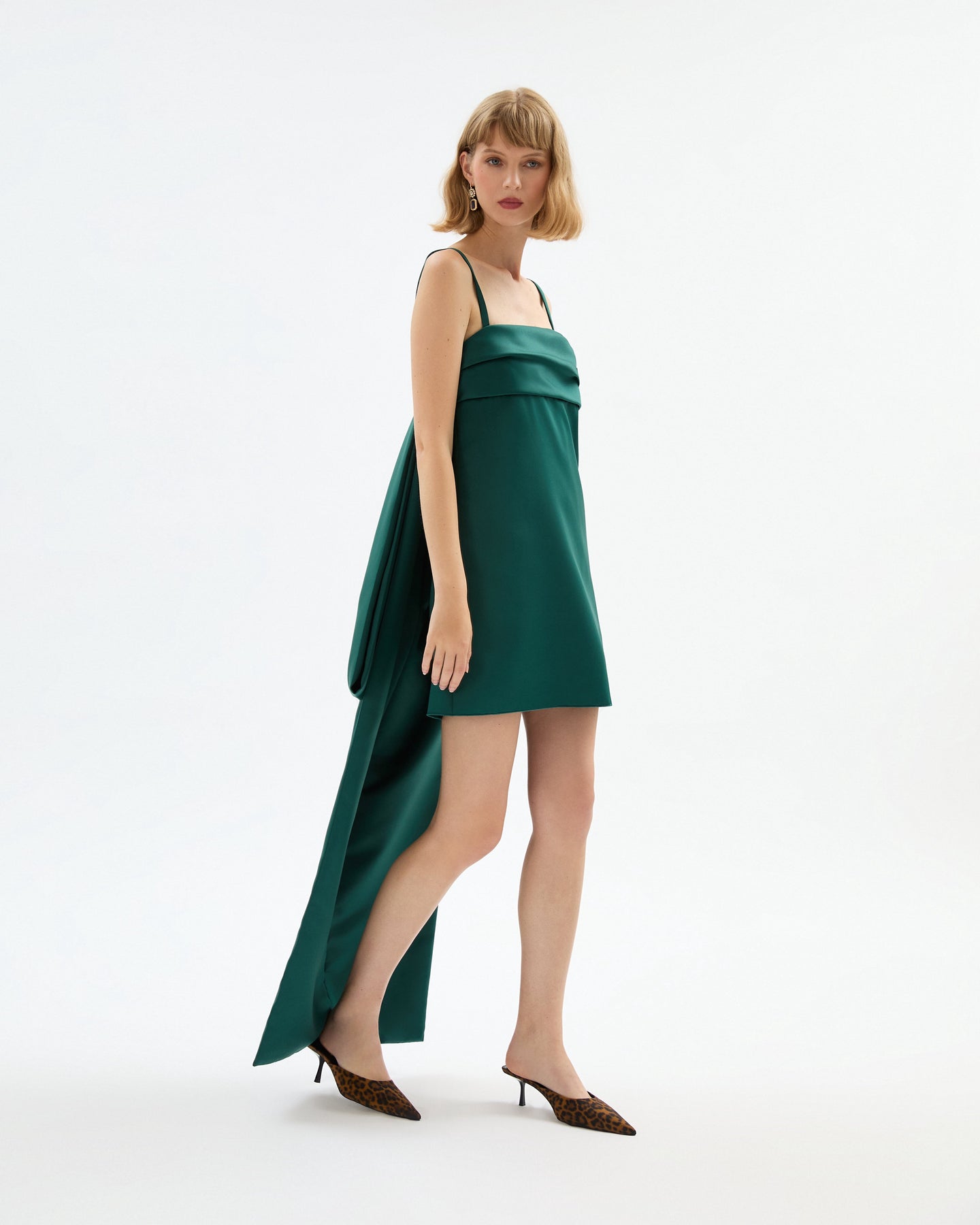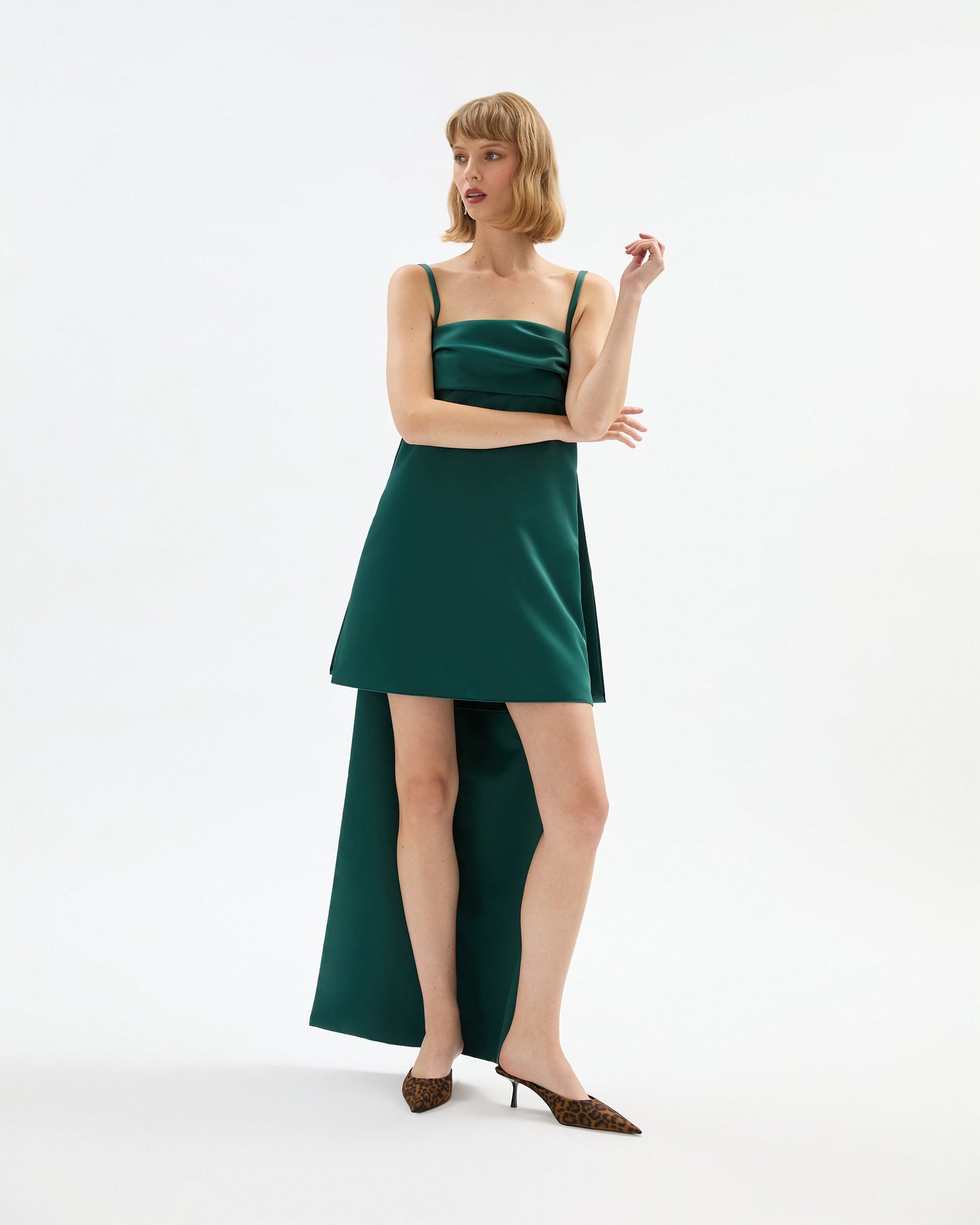 Cleo Gown's little sister likes to dance on tables and more importantly, look glamorous wherever she goes. She is a mini dress with attitude featuring a bodice draped bust line and a modern sculptural train.