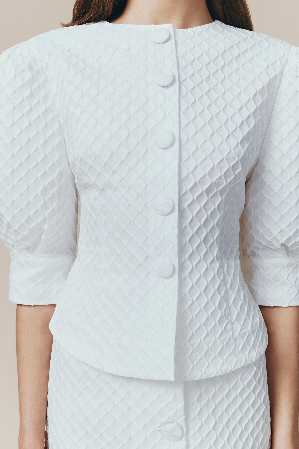 • Elegant puff sleeves for a refined silhouette