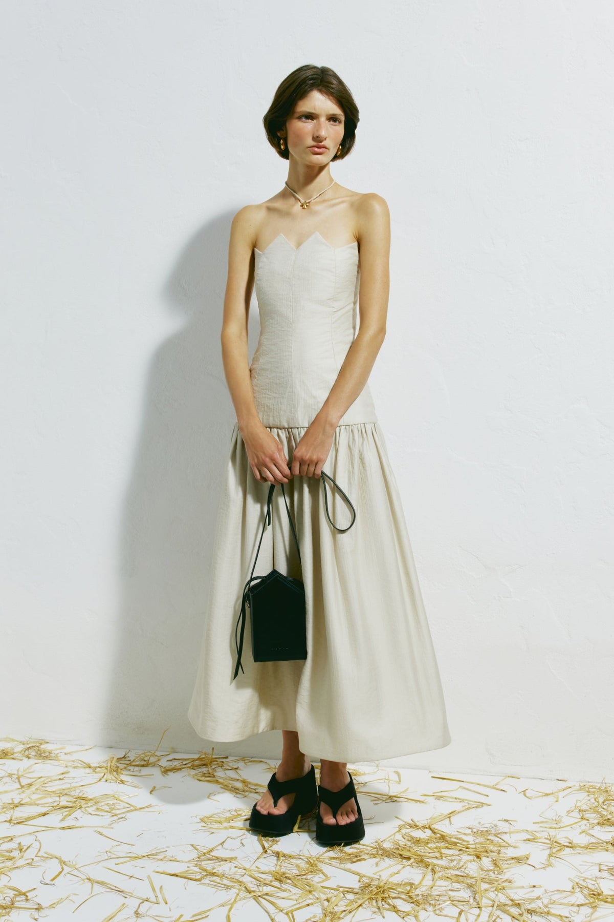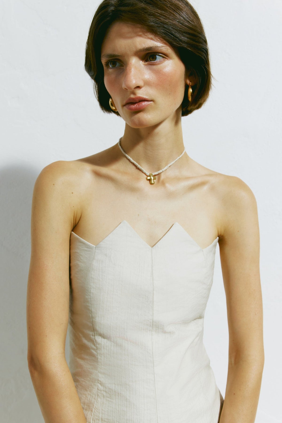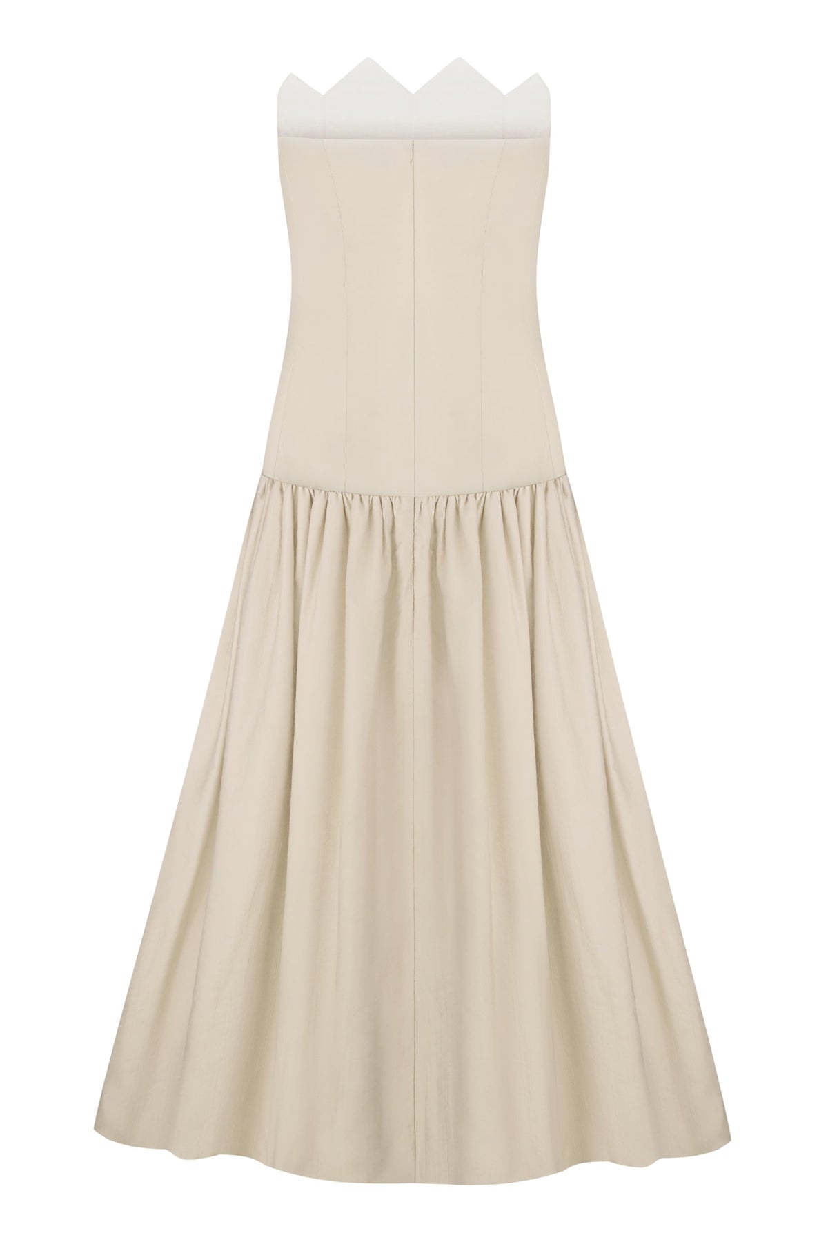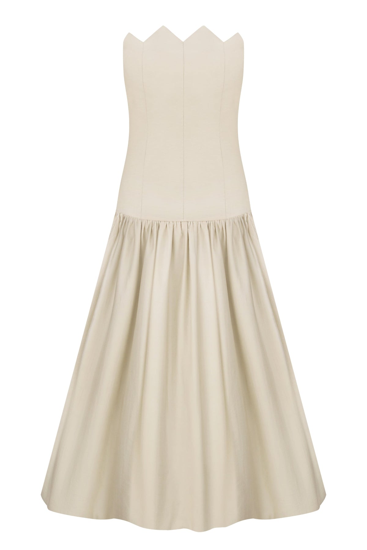 Elevate your wardrobe with the Gont Dress, a sophisticated maxi silhouette that seamlessly blends comfort with refined elegance. Crafted from a premium cotton and tencel blend, this strapless design features a semi-fitted bodice that gracefully transitions into an A-line skirt with generous volume from the thighs down, creating a flattering and dynamic silhouette. The delicate scalloped neckline adds a distinctive feminine touch, while the discreet back zip closure ensures a smooth, polished finish. Ideal for evening events, garden parties, or upscale casual occasions, this versatile piece offers breathable fabric that moves beautifully with you throughout the day.