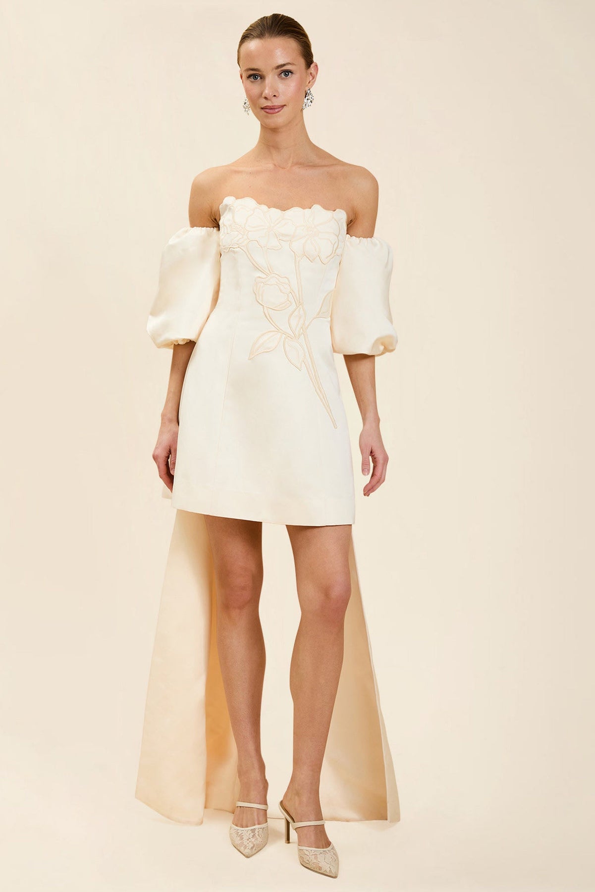 - Delicate tonal floral embroidery that adds romantic texture