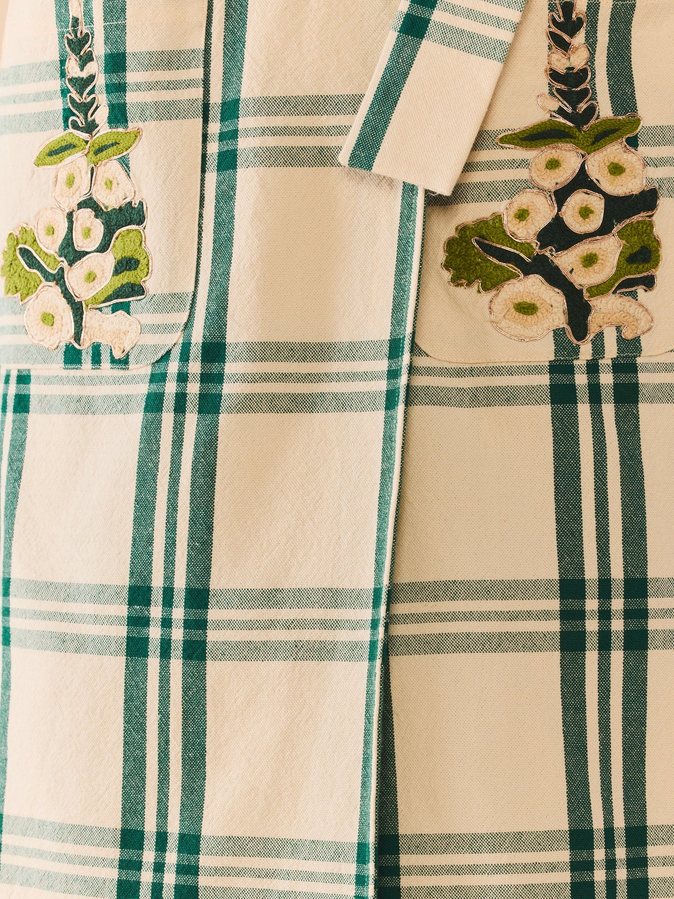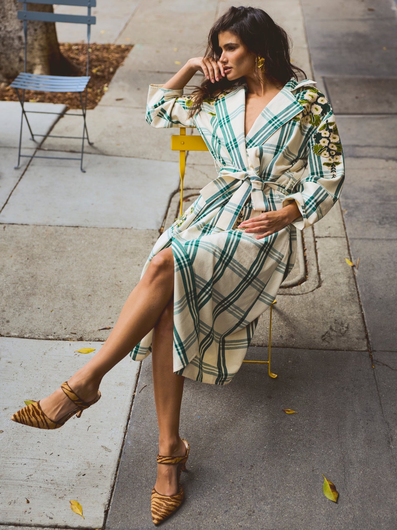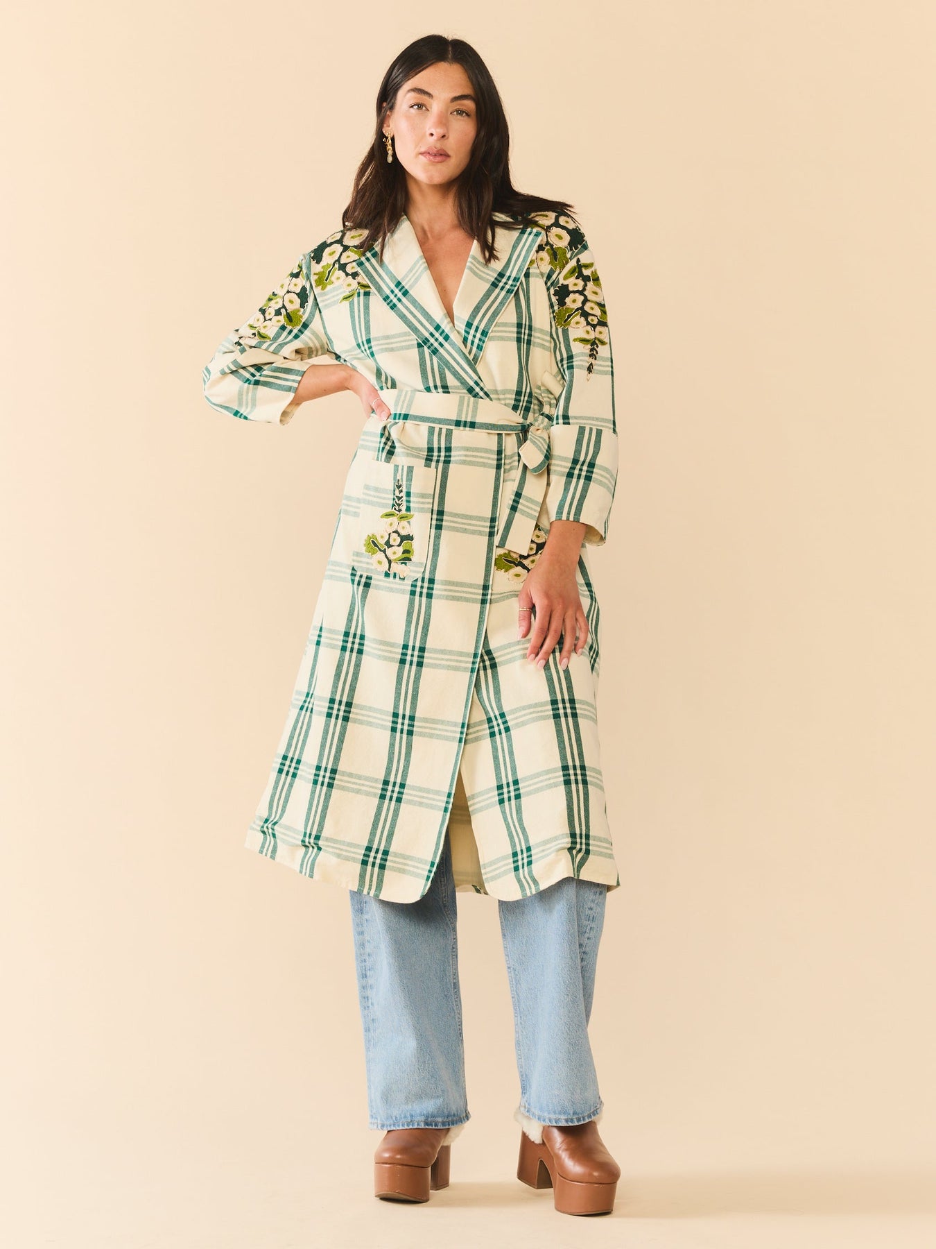 Classic tailoring? Check. Cozy plaid? Obviously. Breathable enough for a Texas Fall? Necessary. We added embroidered florals (created by Larsen McDowell), because life’s too short for boring outerwear. Throw it on with jeans for “just ran out for a latte” energy or belt it layered over top your favorite dress from the collection.