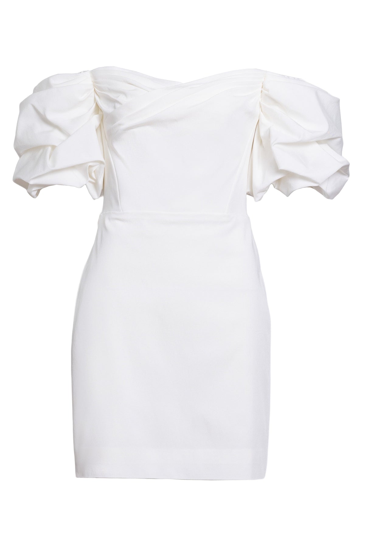 The Mini Tess Dress brings her signature authority to a sharper silhouette. Cut in a new-season fabric with a structured feel and subtle sheen, she holds her shape while keeping her edge. The updated puff sleeve adds volume with intention, balanced by a clean, sculpted mini line and directional drape through the bodice.