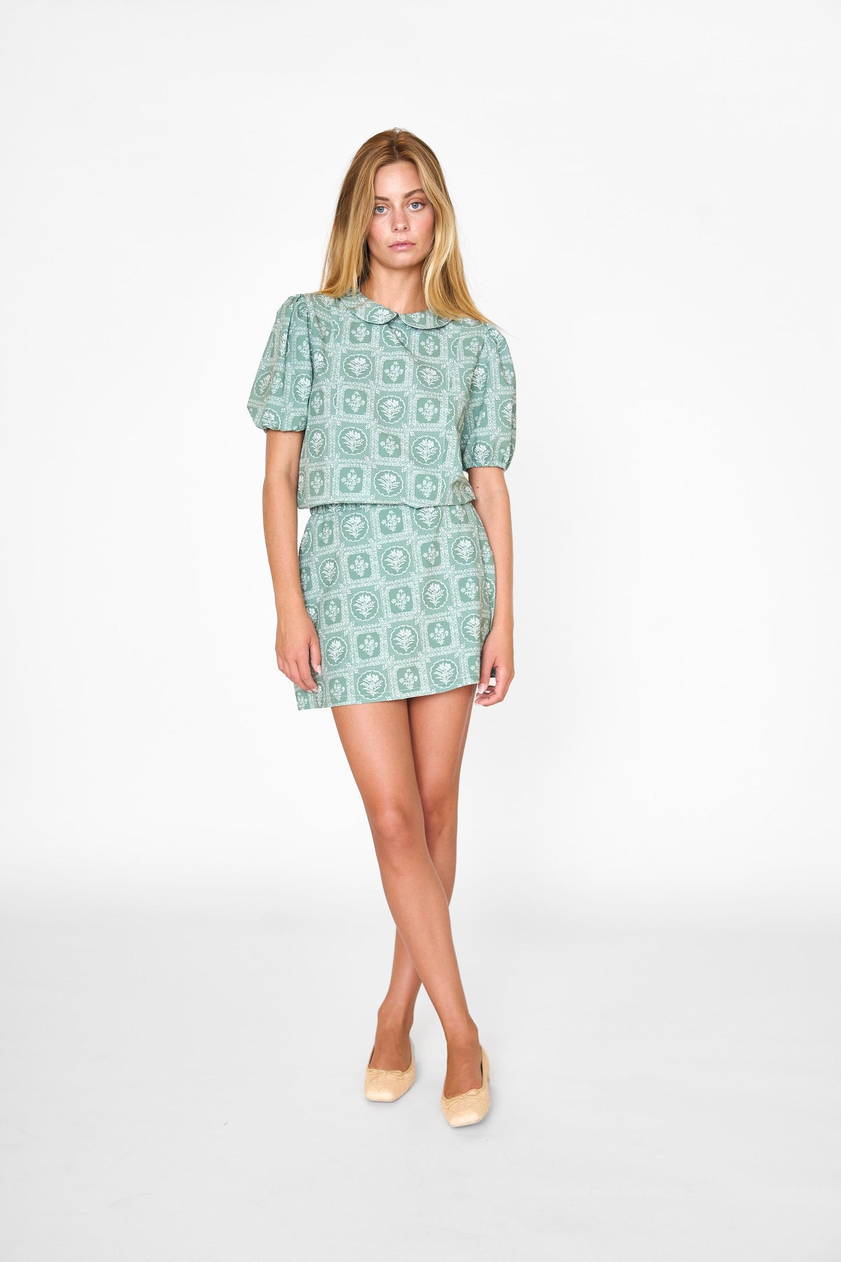 The Pamela Top combines a feminine and sporty look. We’ve upgraded your mom’s polo with our gathered puff sleeve and peter pan collar. Pair back to the Worth Skort for a full floral look on the links! UPF 50+