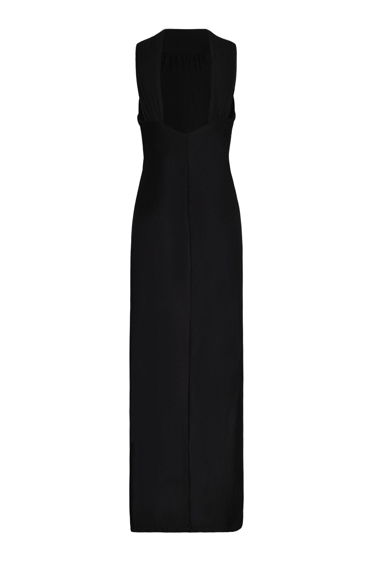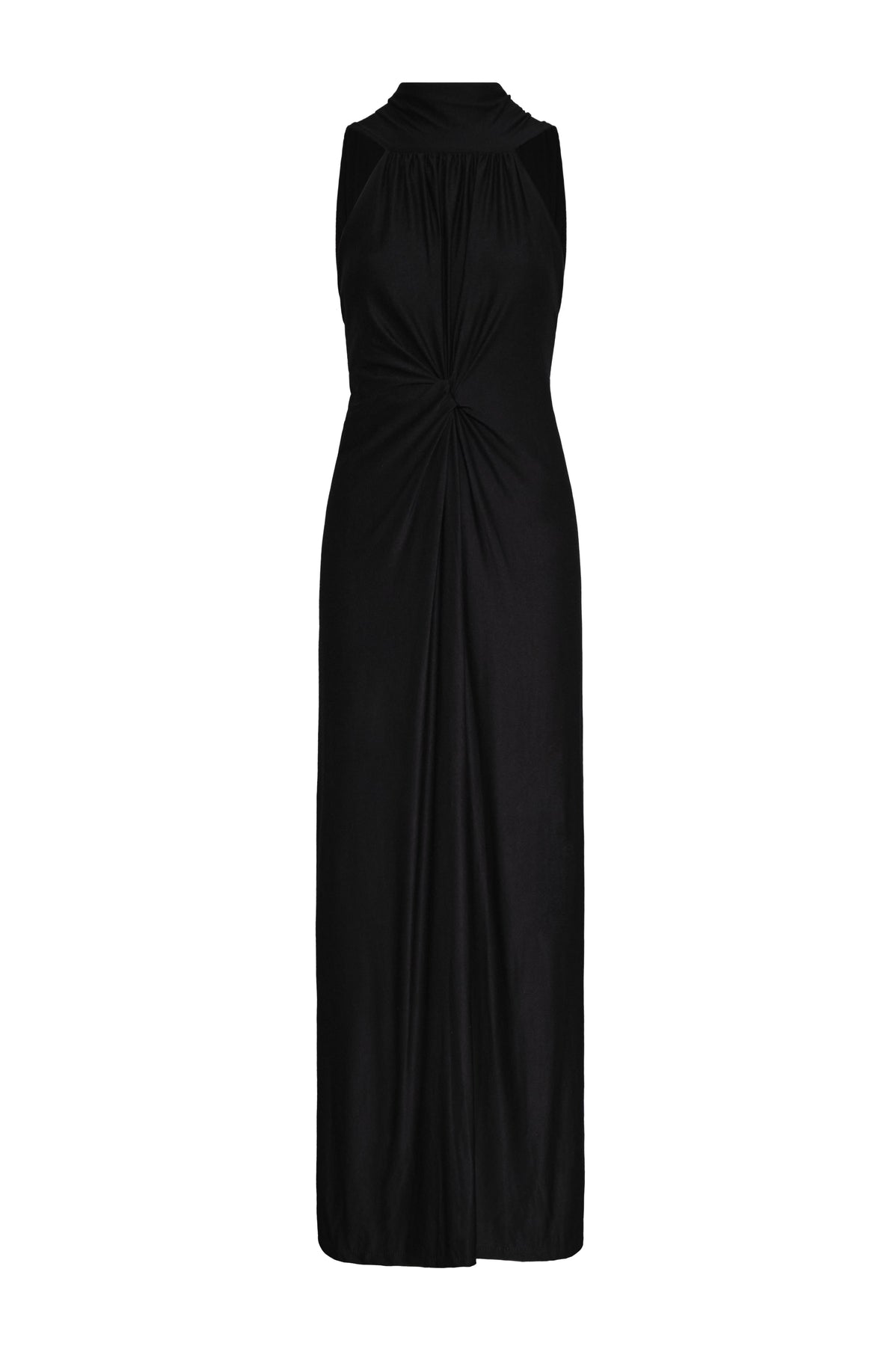 The Rosales Jersey Midi Dress in Black is an ode to modern sensuality. Crafted in soft, fluid jersey, this midi silhouette features a central draped detail that flatters the waistline, with delicate gathering at the neckline. A deep open back adds a dramatic, refined finish.