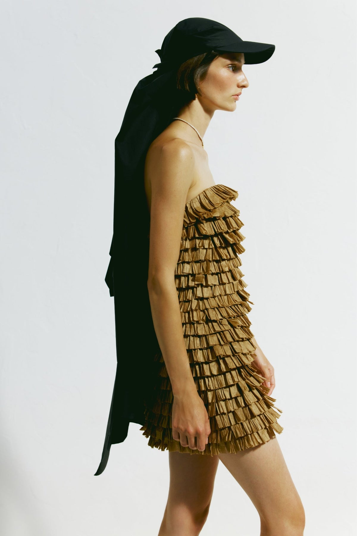 The Strikha Dress exemplifies contemporary design through its thoughtful construction and material selection. Tailored in tencel—a sustainable fiber known for its fluid drape and breathability—this semi-fitted mini dress strikes an elegant balance between structure and movement. The distinctive raffia coating adds textural depth and visual interest, elevating the piece beyond conventional silhouettes. A concealed back zip closure provides practical functionality while maintaining the dress's refined aesthetic. Ideal for those who appreciate quality craftsmanship and understated luxury, this dress transitions seamlessly from day to evening occasions.