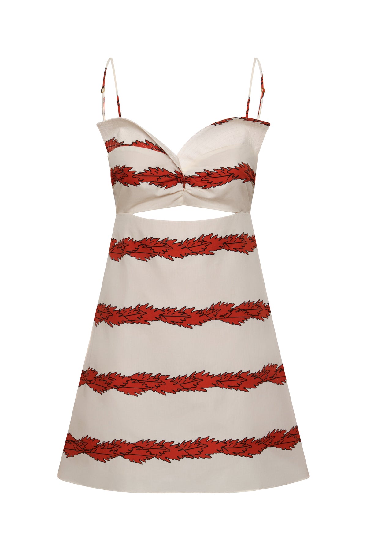 Victoria Cotton Mini Dress / Ivory Striped Helechos