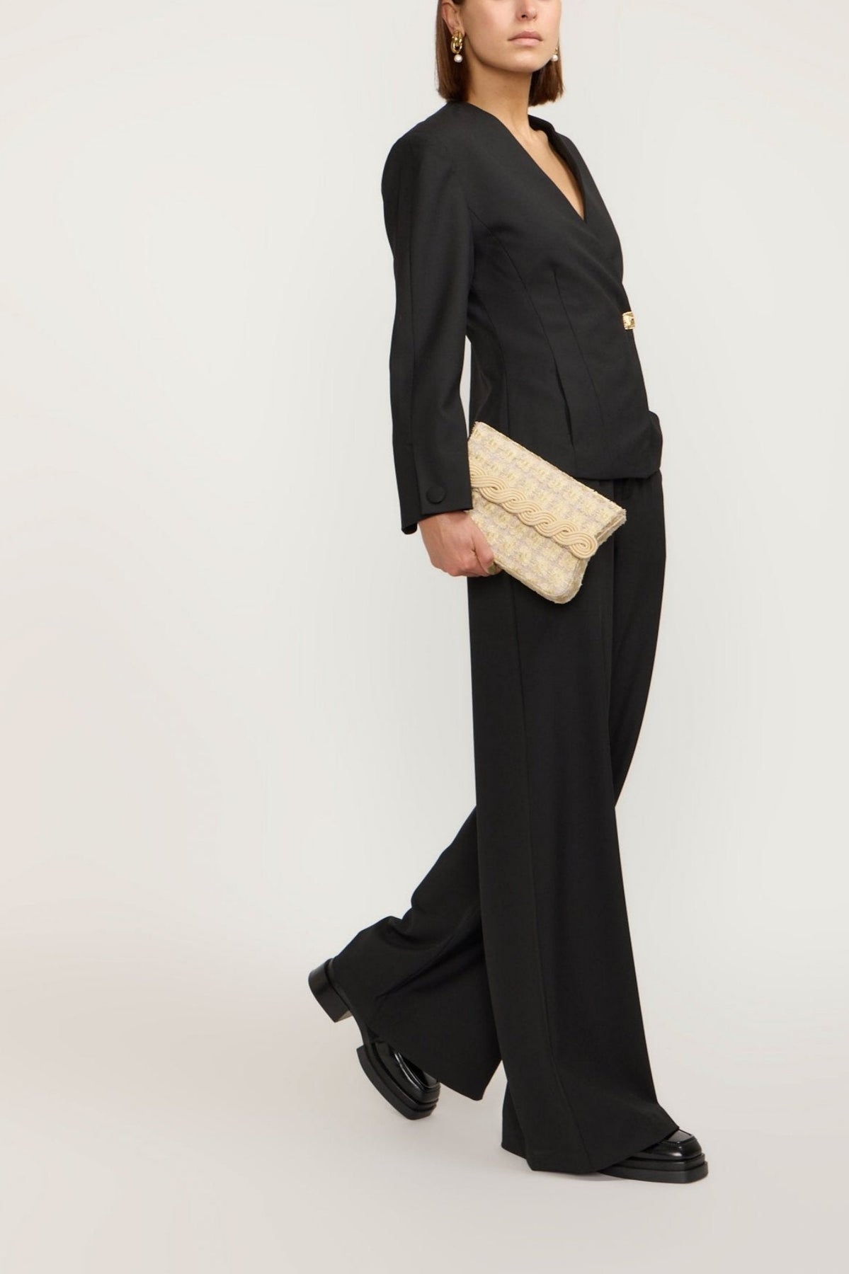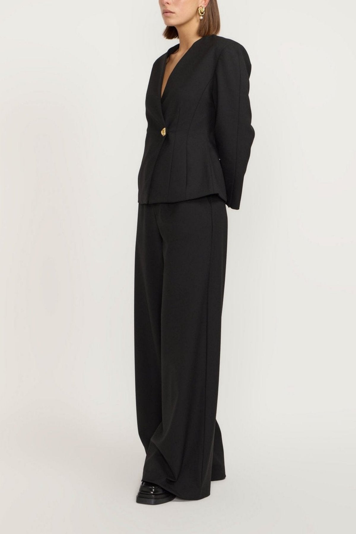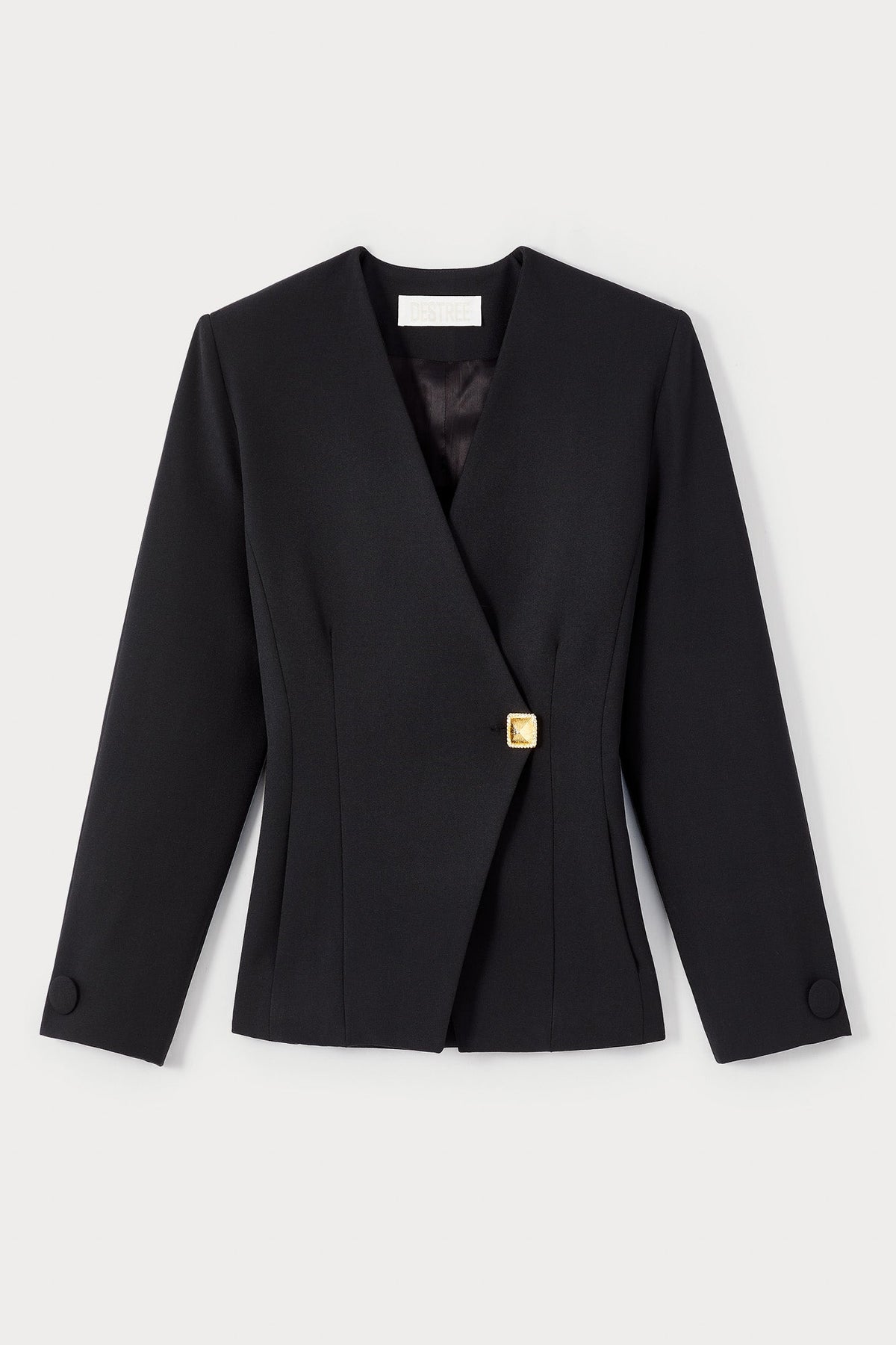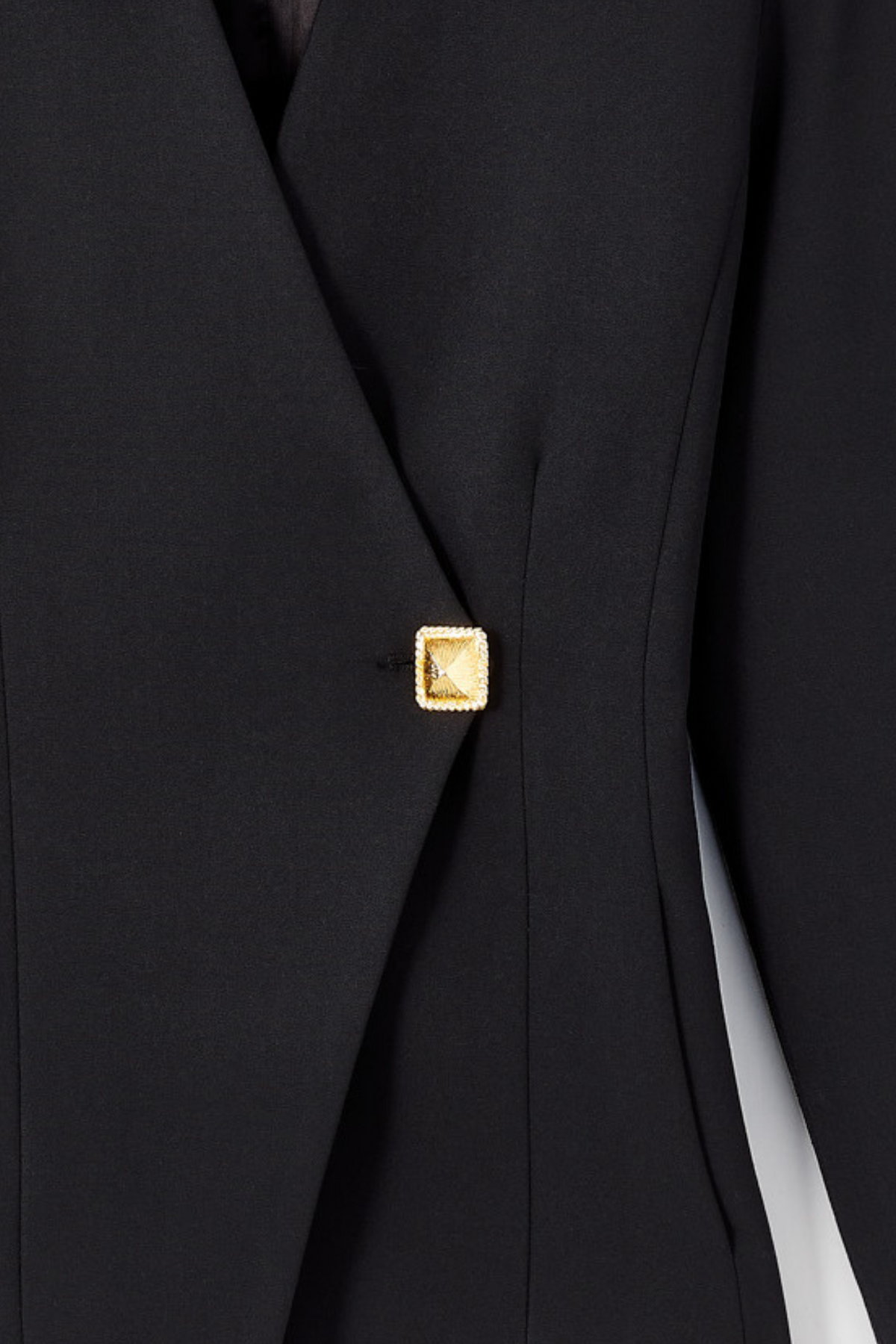 Make a stylish statement with our GOLD BLACK Blazer. Tailored to perfection, this blazer features a V-neckline and long sleeves for a sleek look. Complete with a gold button, it's the perfect addition to any formal or casual outfit. Stand out from the crowd in this unique piece!