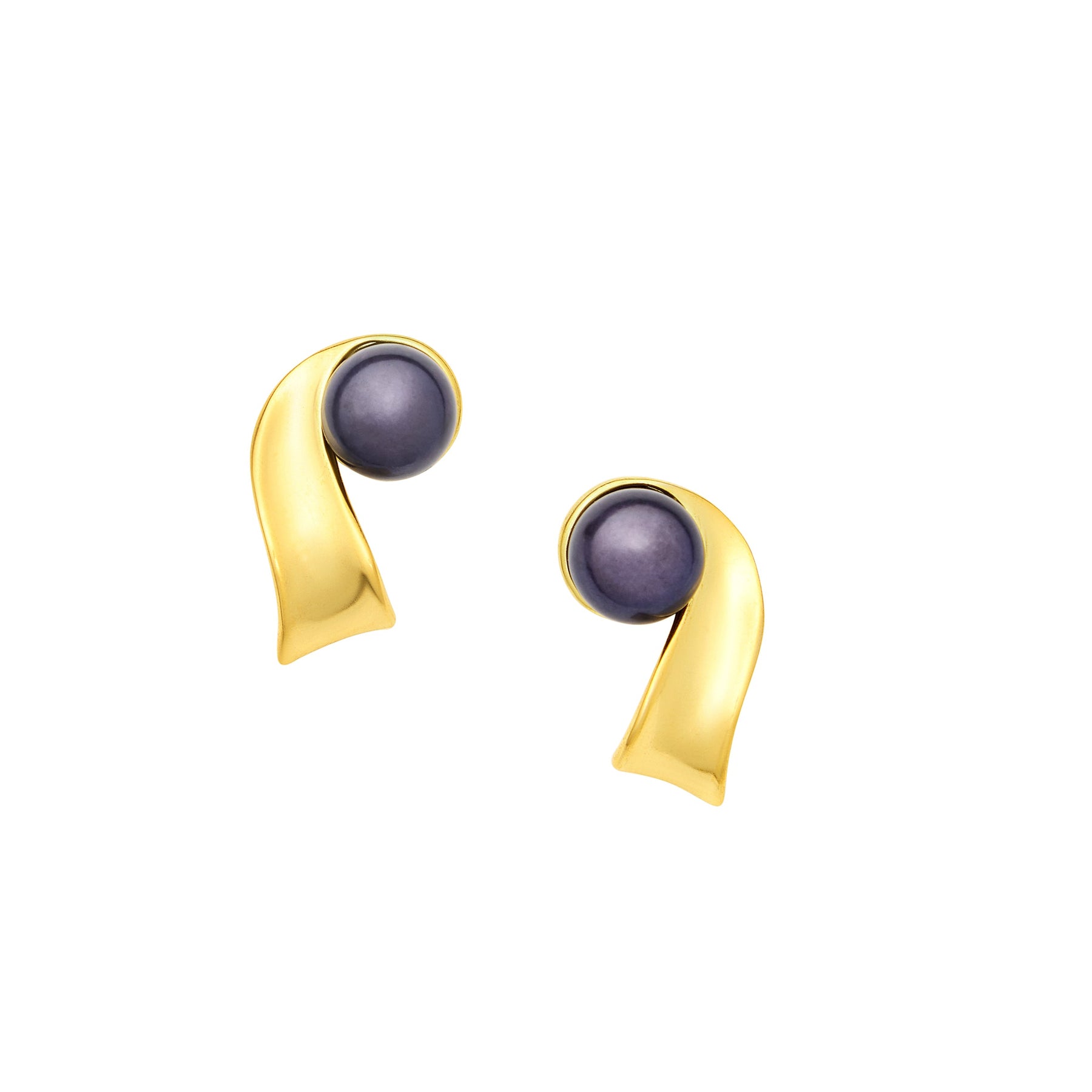 - Freshwater button pearls set in 24k antique gold plated swirls on stainless steel hypoallergenic posts