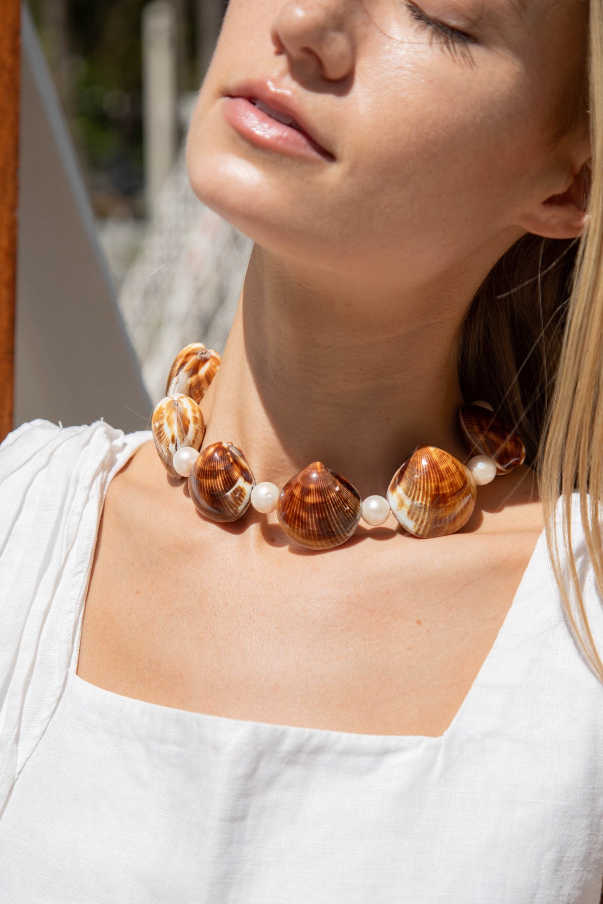 The Vicky Necklace doesn’t whisper—it speaks in waves. With chunky freshwater pearls and bold sculpted shells, it’s a striking blend of ocean-born texture and confident form. Radiating sunlit shimmer and coastal charm, it’s made to stand out—and made for those who do the same.