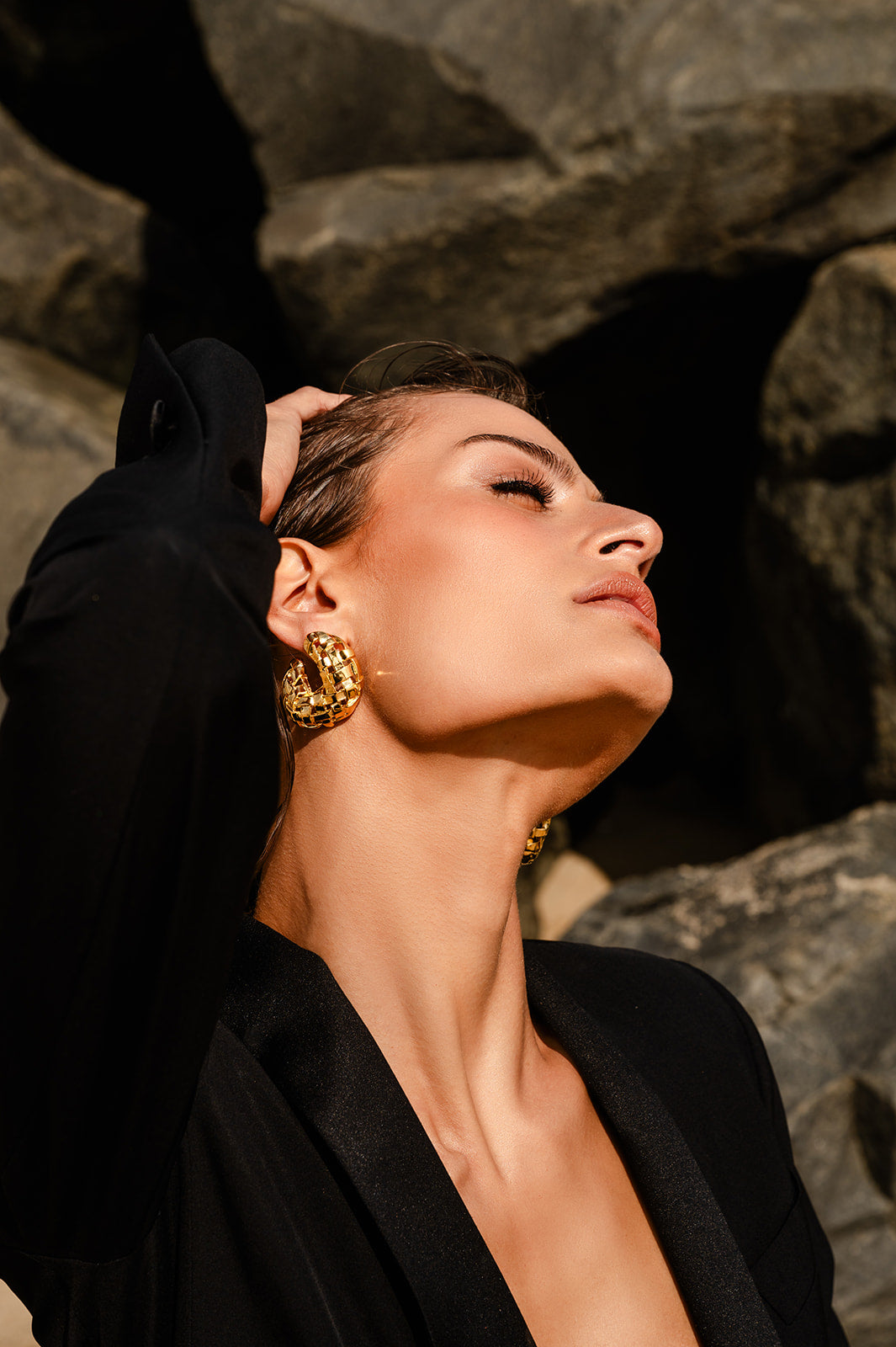 - Custom oversized Christina Caruso earring-back for comfort and stability