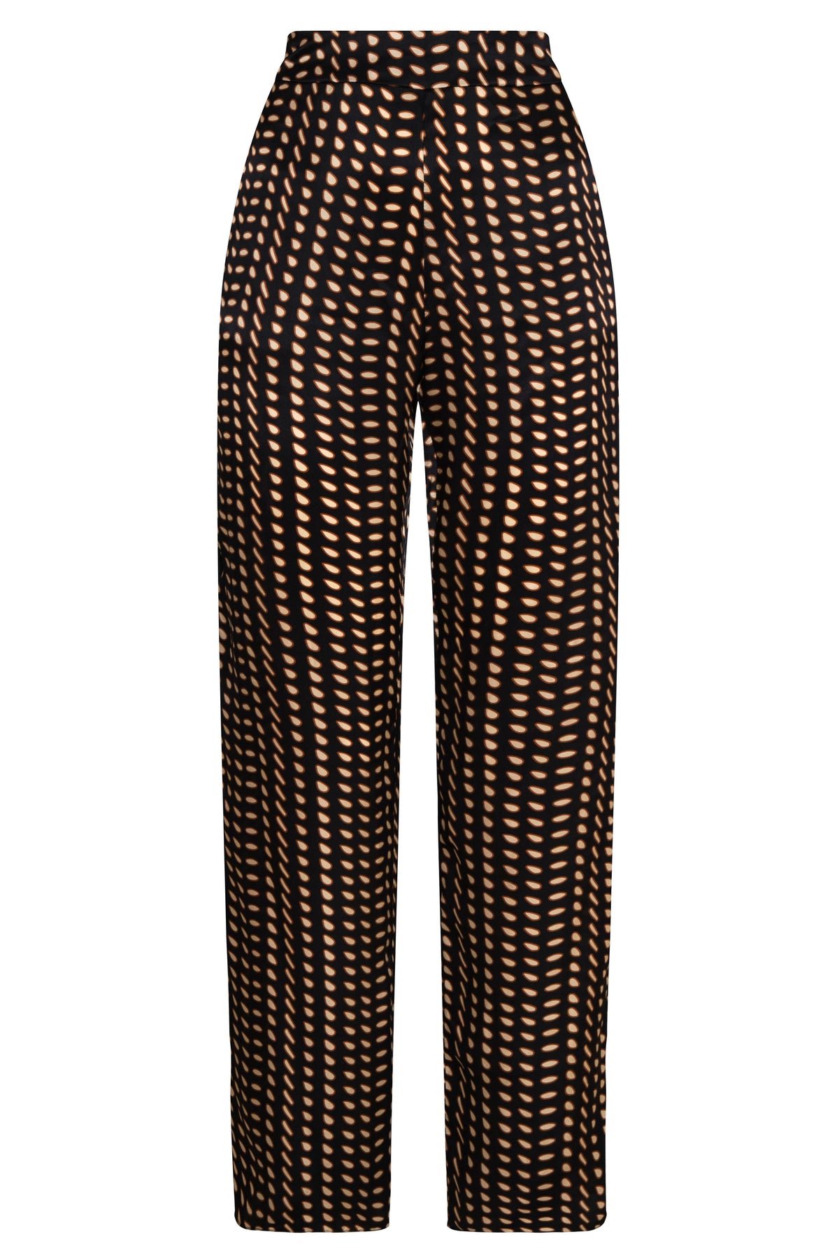 The Santo Tomás Satin Silk Pants in Black & Ivory Seeds print offer effortless sophistication with a relaxed fit. Crafted from smooth satin silk, these straight-leg pants feature an elastic waistband for comfort and an invisible side zipper for a clean, tailored finish.