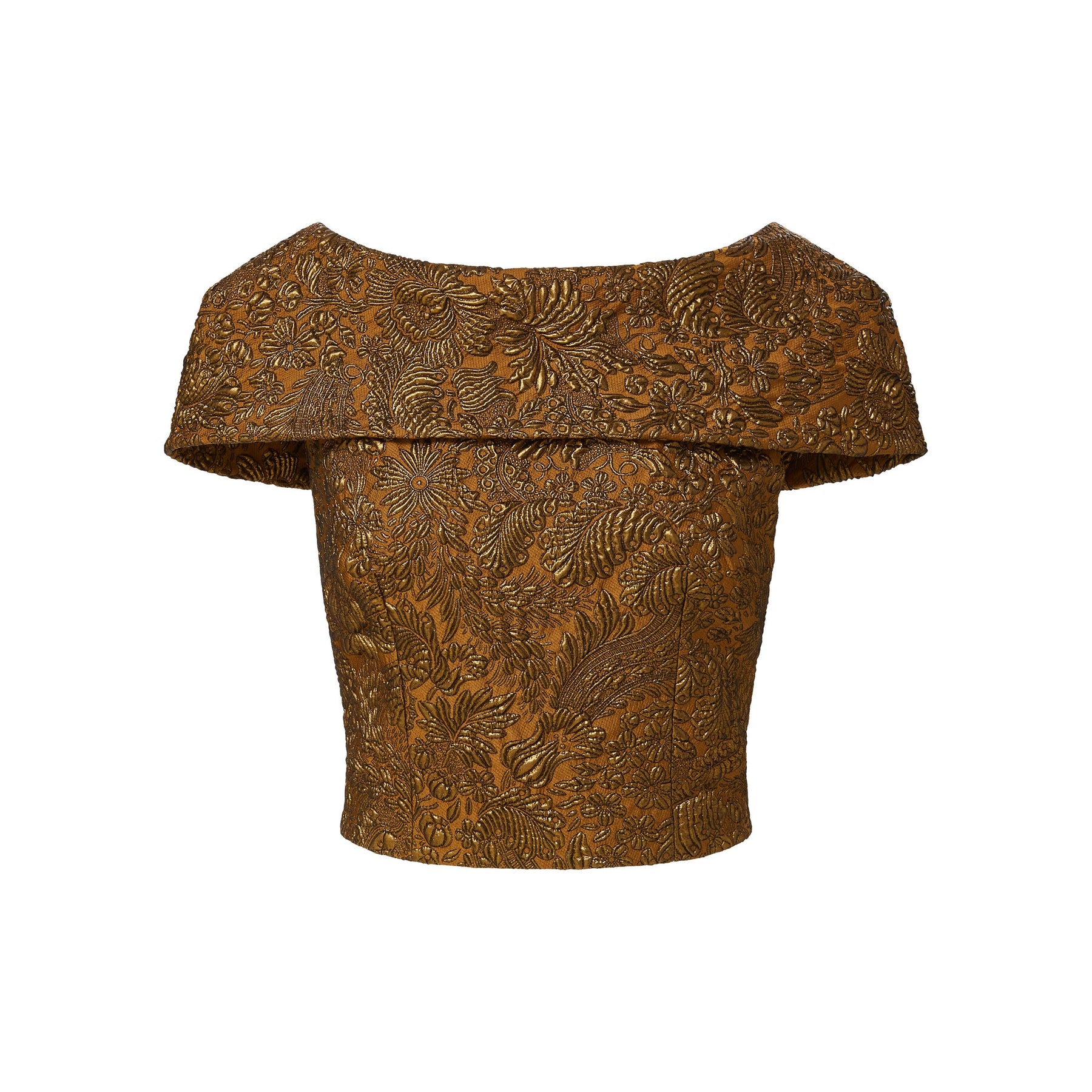 Sculptural and striking, the Bethany Top is crafted from our warm copper-toned Italian brocade, featuring the art-nouveau inspired floral motif that anchors the Fall 2025 collection. With a structured silhouette and subtle shaping through the waist, she brings instant drama with minimal effort.