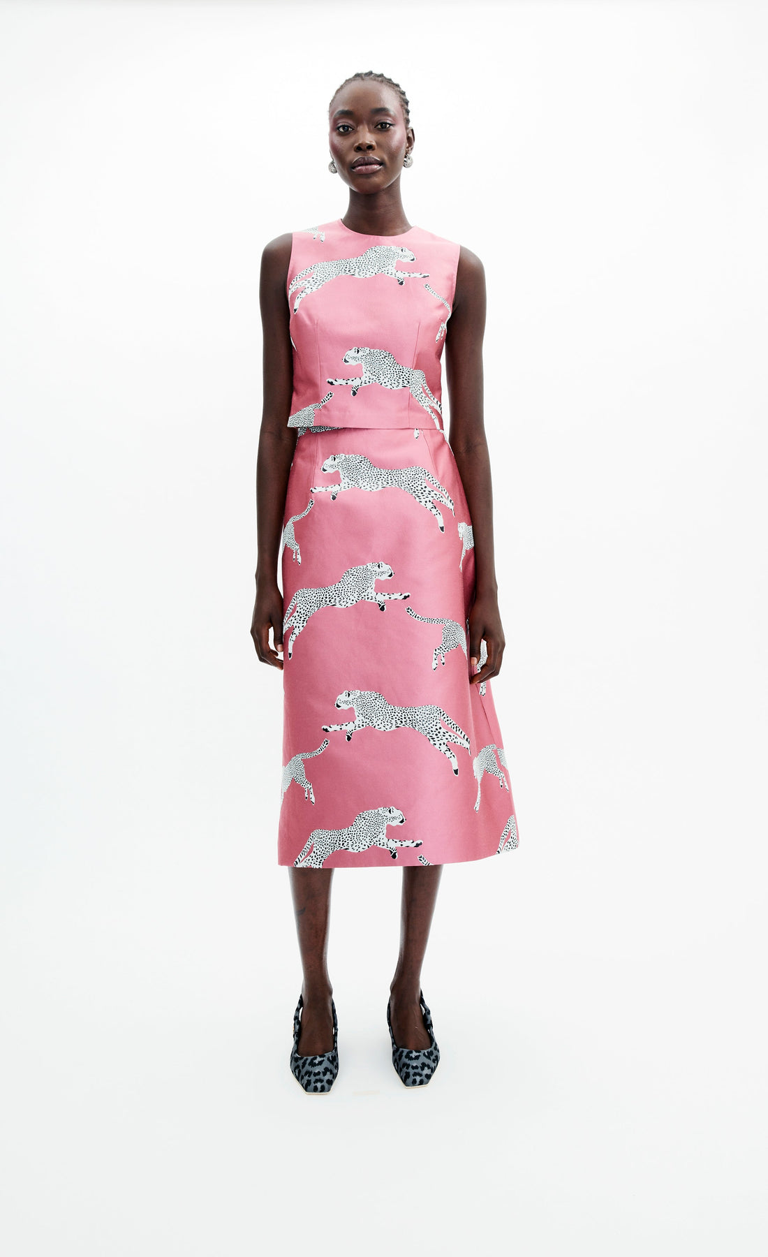 Crafted from from the MAE x Scalamandre Leaping Cheetah jacquard, this a-line midi skirt is the perfect silhouette for the season's jacquard.