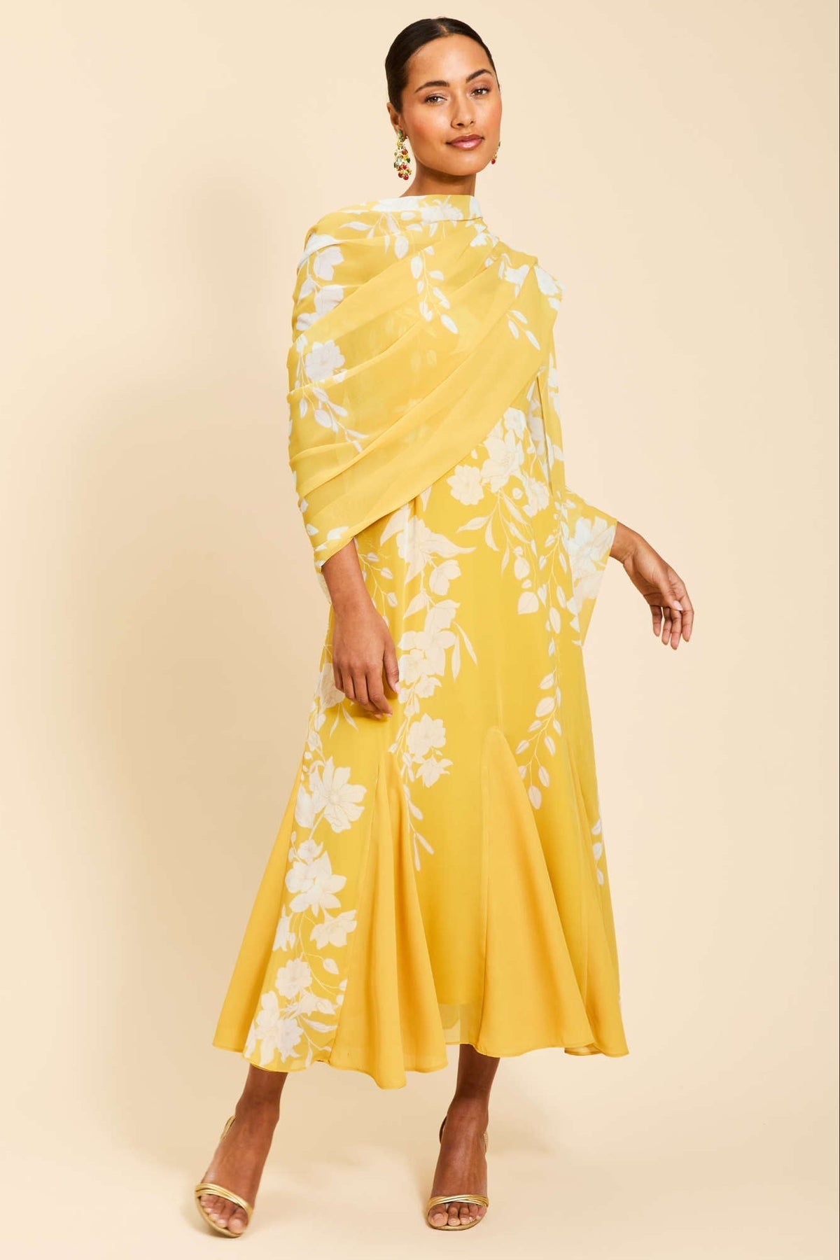 • A sweeping trumpet silhouette that moves beautifully with every step