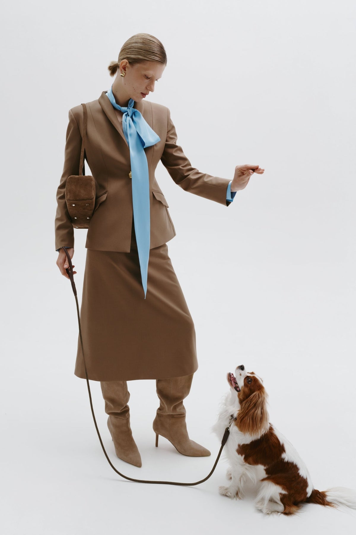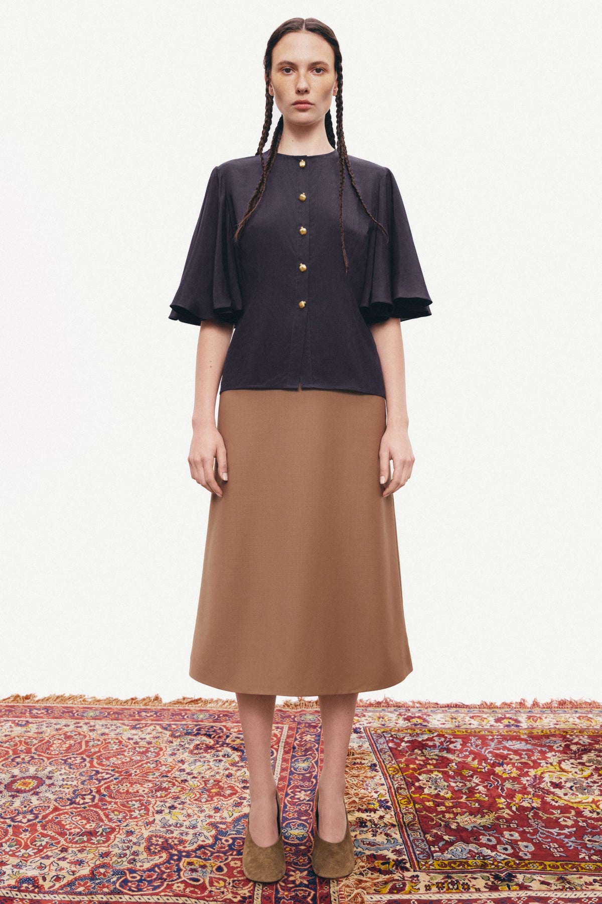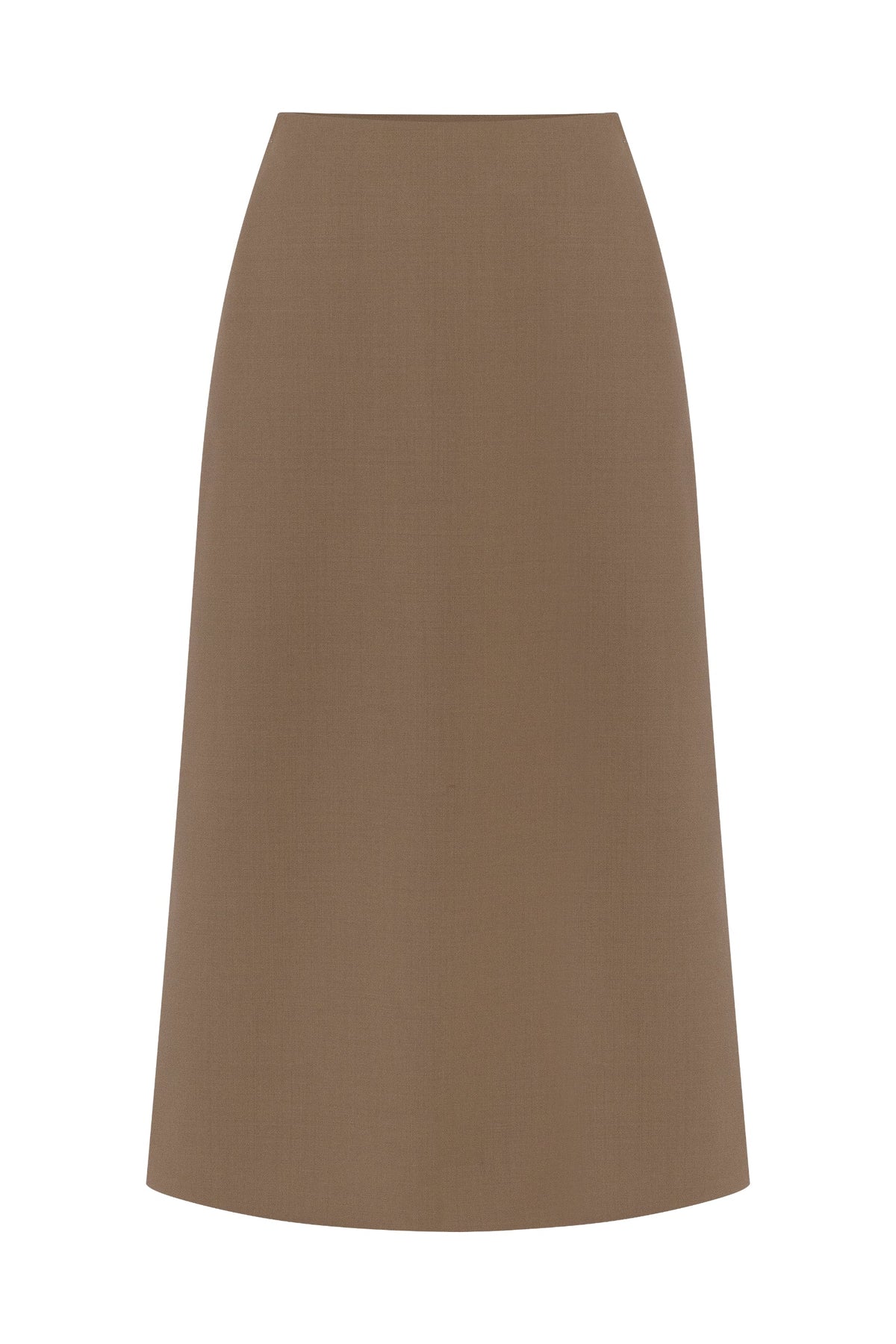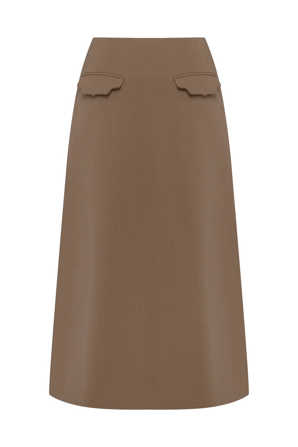 This refined A-line midi silhouette offers a tailored waist with thoughtful construction details. The side zipper closure ensures a polished fit, while dual side pockets and back flap pockets provide practical functionality without compromising the skirt's clean lines. An essential piece that balances structure with everyday wearability.