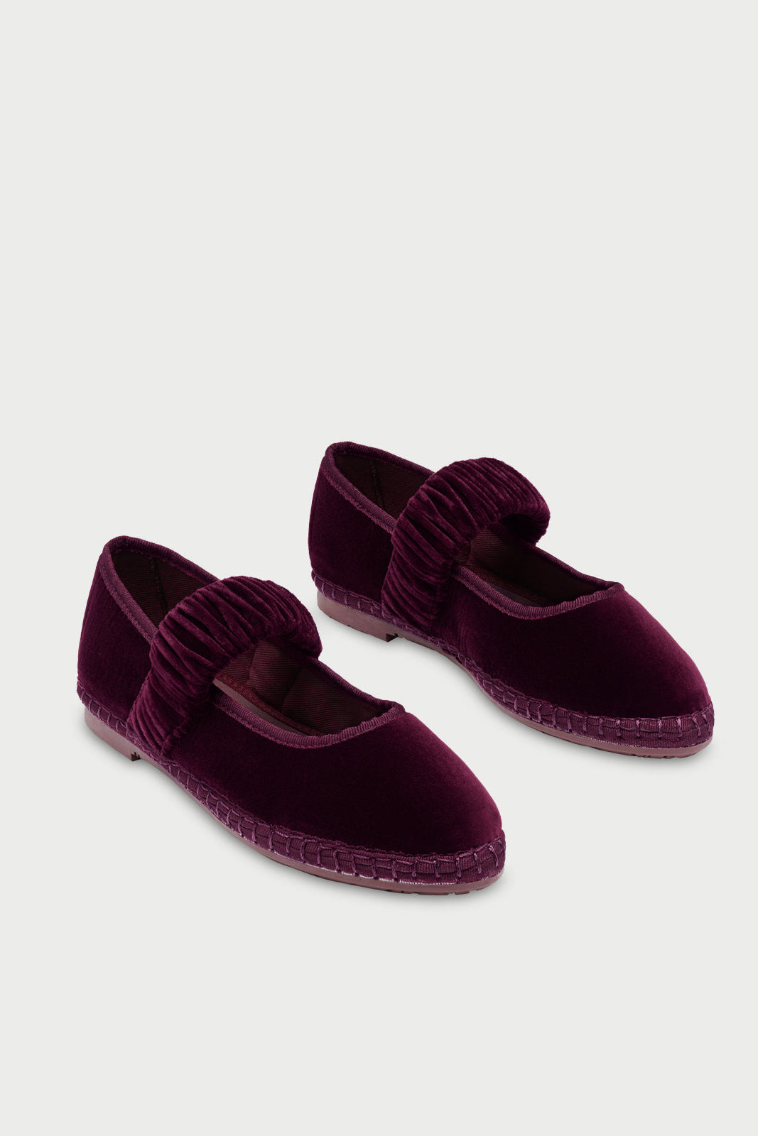 • Velvet mafalda in dark burgundy with dark burgundy piping and dark burgundy velvet lace.
