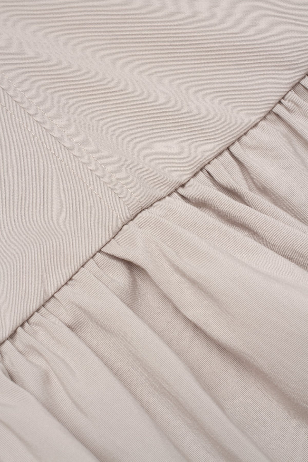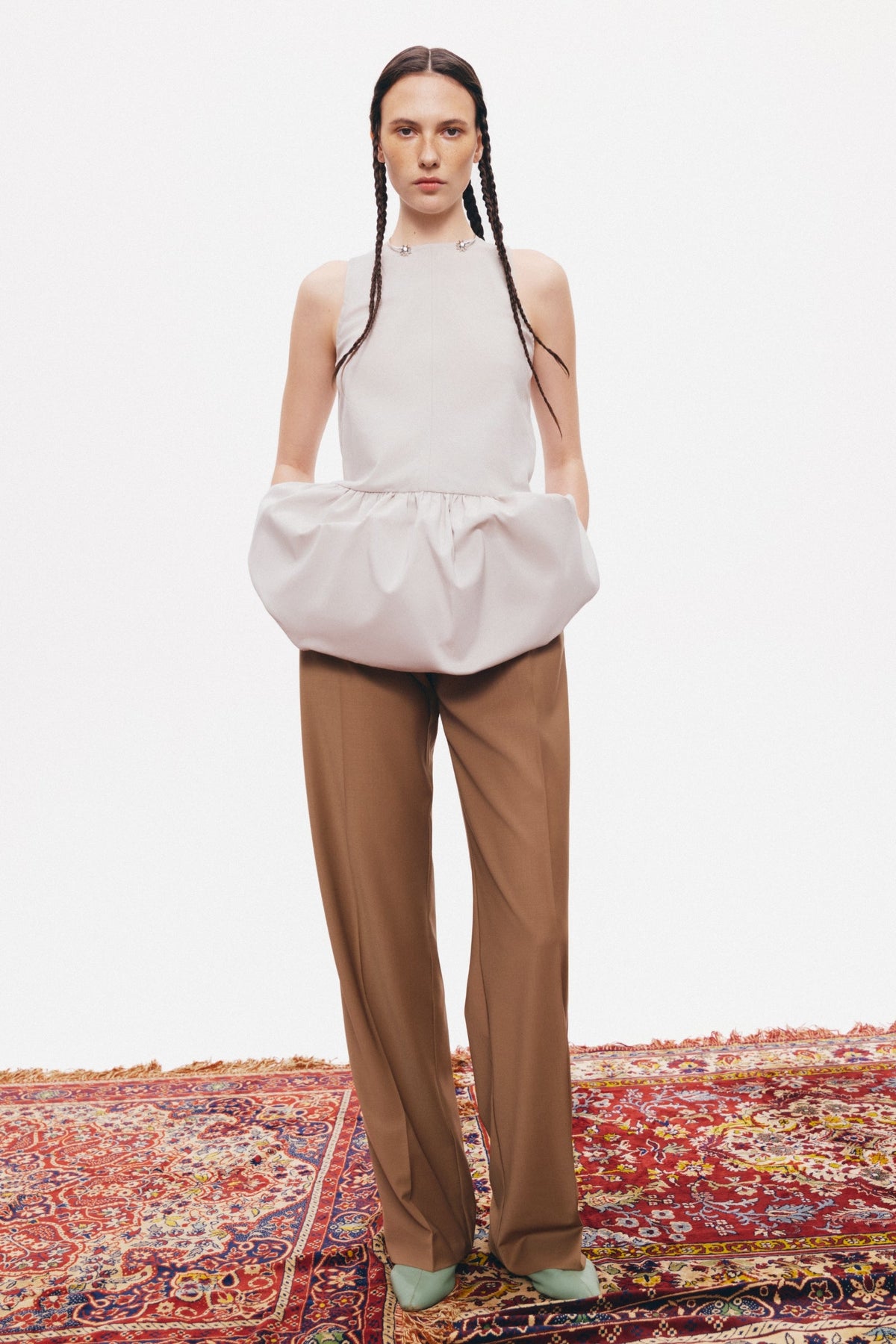 Semi-fitted top with a decorative voluminous hem that creates elegant movement and visual interest. The thoughtfully designed silhouette balances a streamlined bodice with a dramatic lower section, offering both structure and fluidity. Features a secure back hook closure for easy fastening and a refined finish. The Minaret Top works beautifully as a statement piece for layered styling or worn solo for occasions requiring understated sophistication. The voluminous hem detail elevates everyday wear while maintaining a polished, intentional aesthetic.