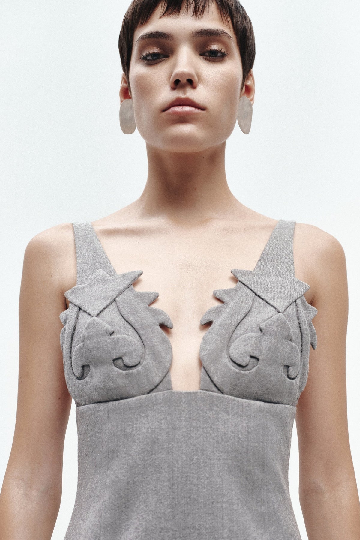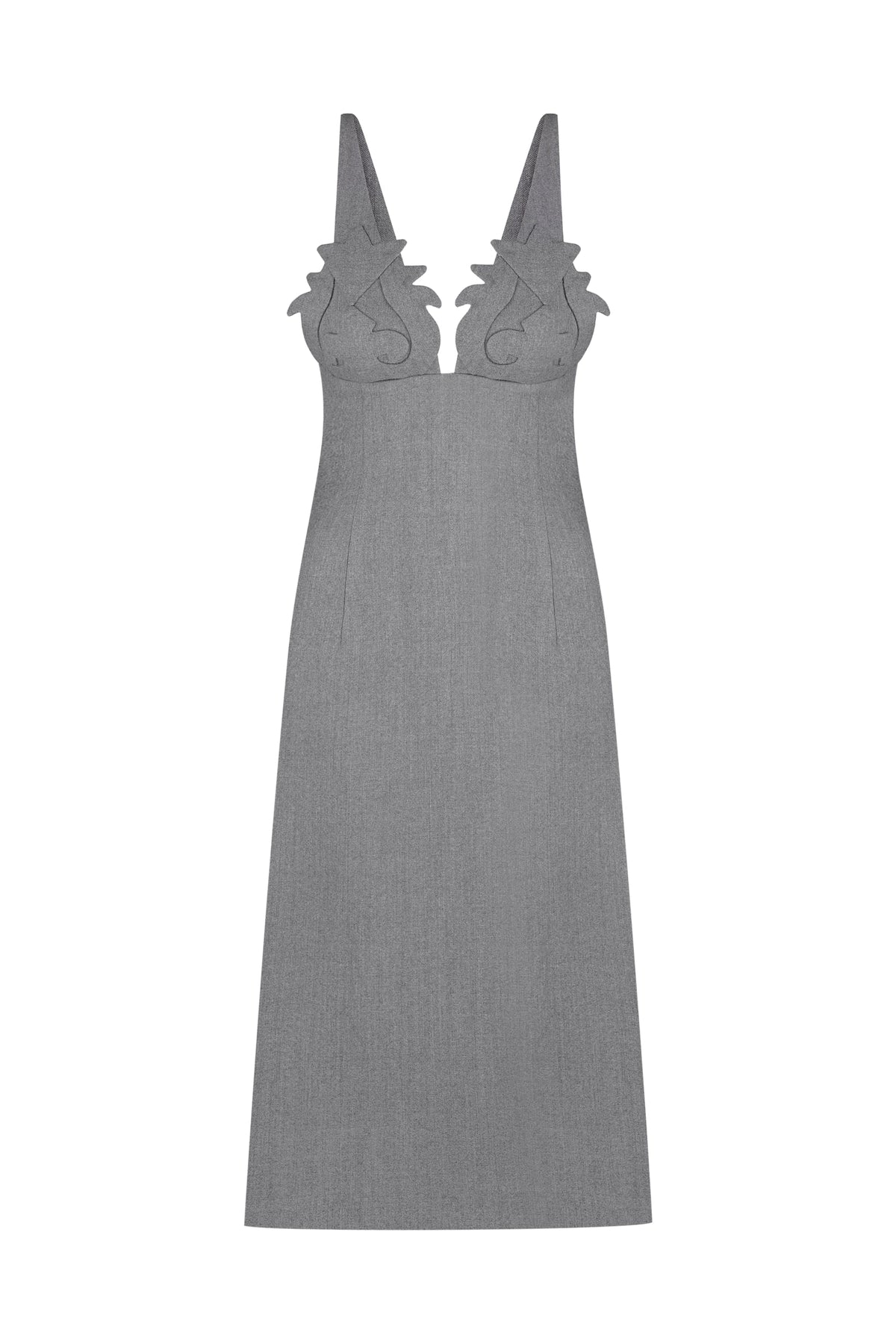 The Prychillia Dress exemplifies refined tailoring with its graceful midi silhouette and structured A-line cut. Crafted from quality wool, this piece offers both warmth and sophisticated drape, making it an ideal choice for transitional seasons. The adjustable straps provide comfortable, customizable fit, while the thoughtfully designed bodice features distinctive decorative detailing that elevates the overall aesthetic. This versatile dress transitions seamlessly from professional settings to elevated casual occasions, serving as a foundational piece for a curated wardrobe. The midi length and classic construction ensure enduring style appeal.