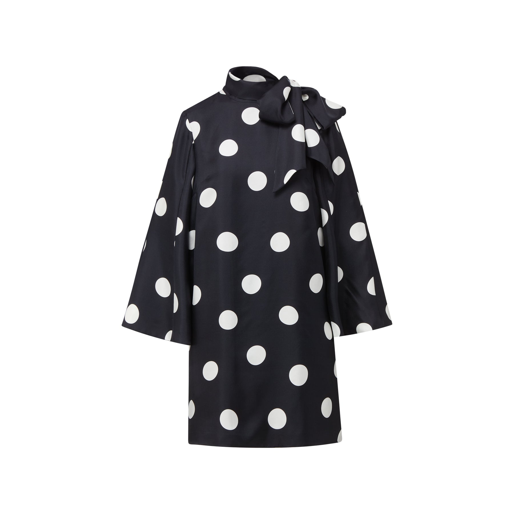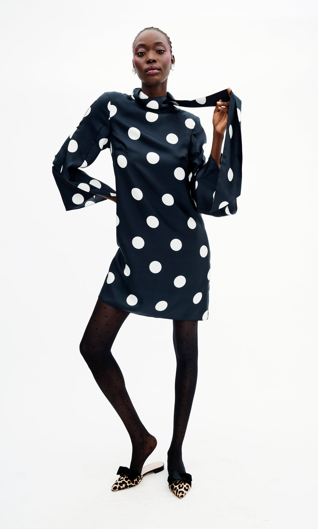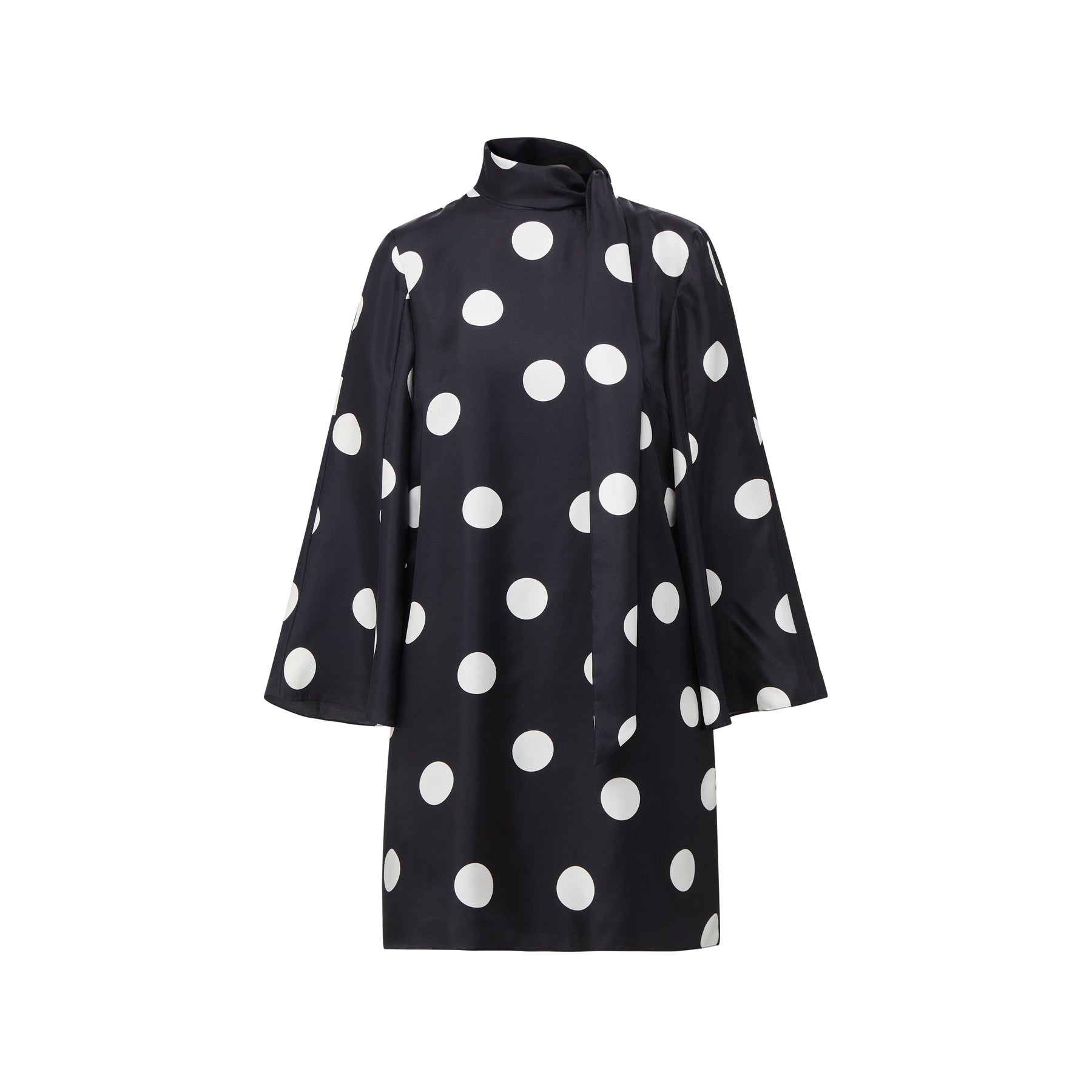 Crafted of pure silk twill, the talia dress will bring instant sophistication with its fluid a-line silhouette, fluted bell sleeve and neck tie detail.