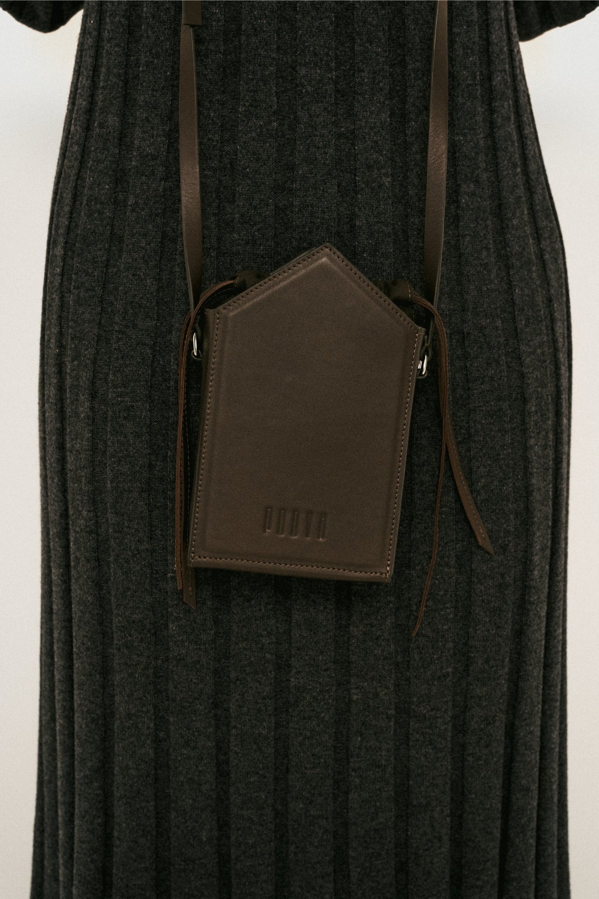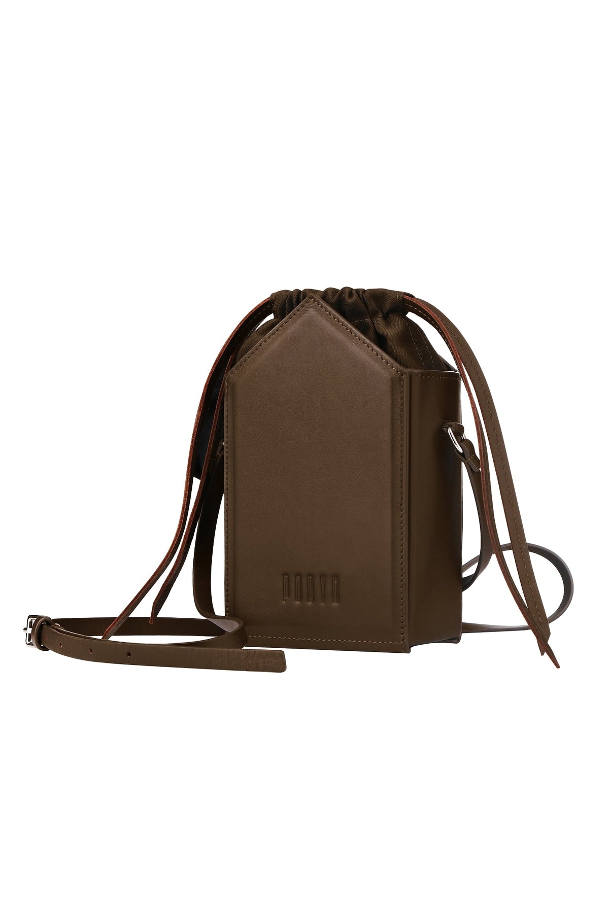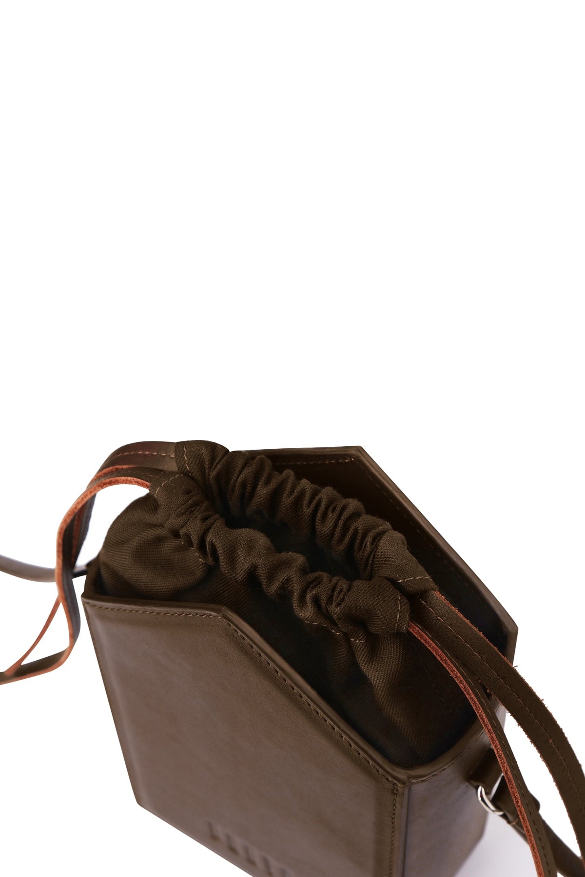 Rigid shoulder bag crafted from smooth matte calfskin leather, designed with architectural precision for everyday sophistication. Features a streamlined flat strap for comfortable carry and a single spacious compartment secured with refined leather drawstrings. An internal patch pocket provides discreet organization for essentials. The minimalist construction emphasizes quality materials and timeless design, making this an investment piece that transcends seasonal trends. Perfect for those who appreciate understated elegance and functional luxury in their accessories.