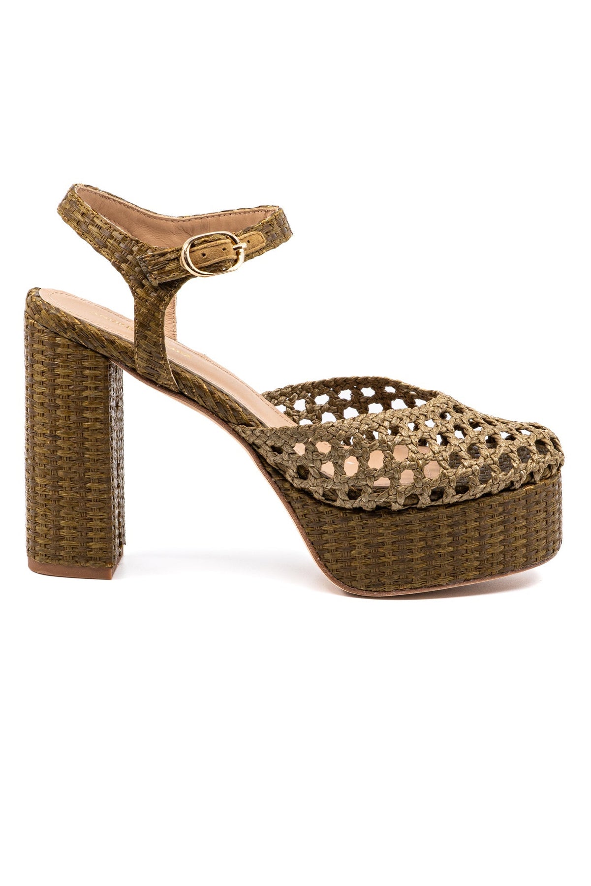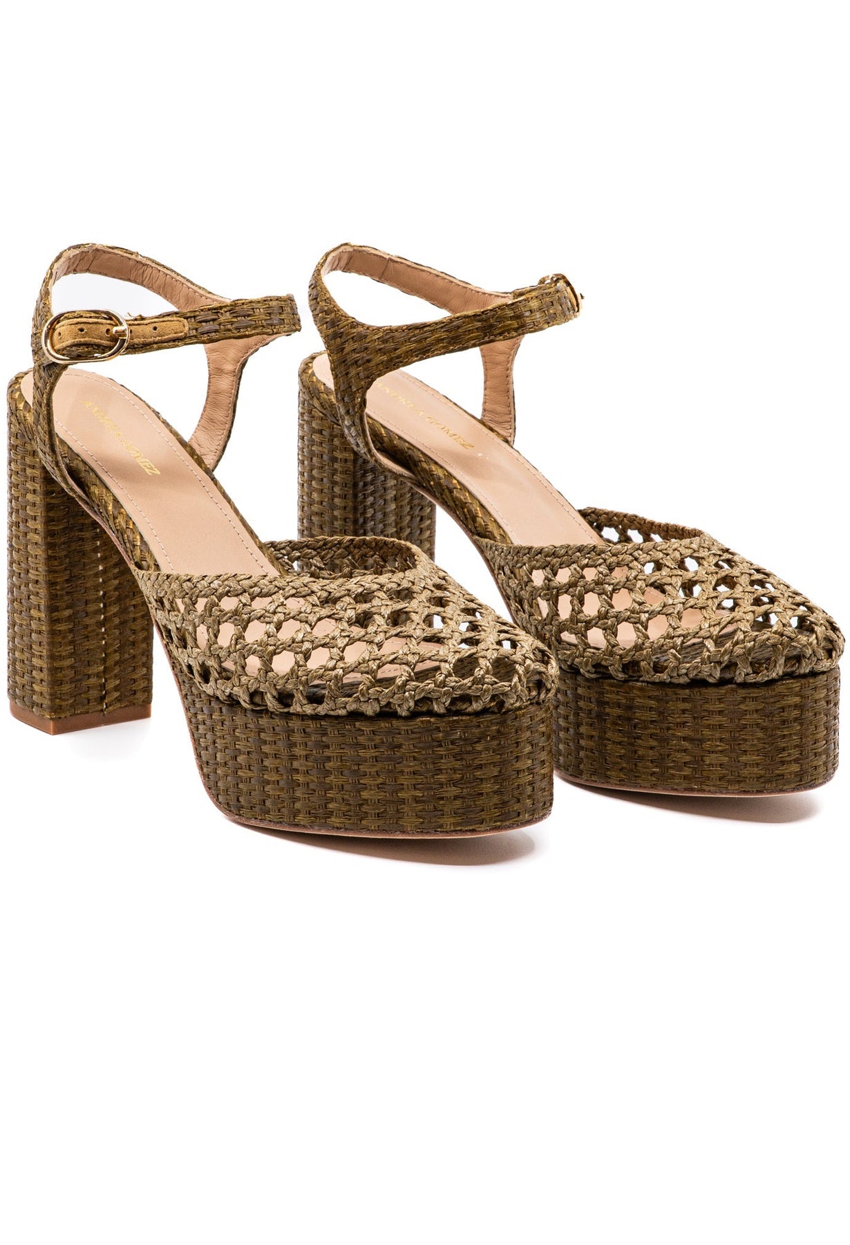 Handmade from woven raffia, this closed-toe platform features a walkable block heel and a buckled ankle strap for secure footing. The natural fiber construction offers breathability and lightweight comfort, making it an ideal choice for warm-weather styling. The elevated sole provides a subtle lift while maintaining stability, and the adjustable ankle strap ensures a customized fit throughout the day. Perfect for transitioning from casual daytime wear to evening occasions, the Beatriz combines artisanal craftsmanship with practical design elements that prioritize both comfort and style.