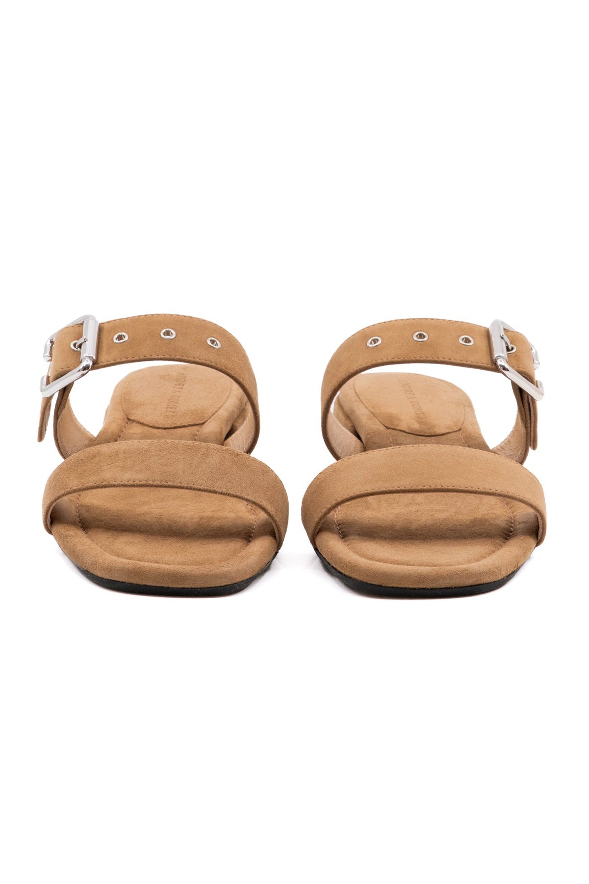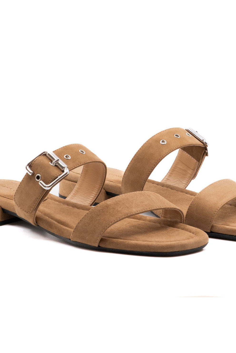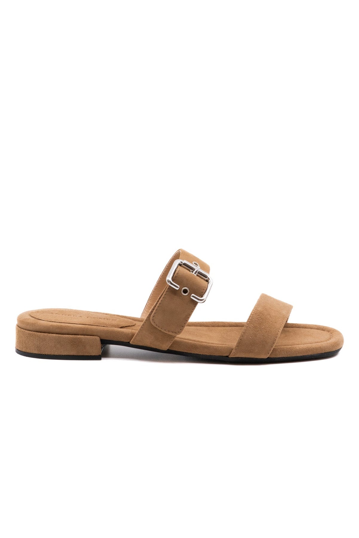 A minimalist slide sandal featuring two sleek straps and an adjustable buckle for a customized fit with a lightly padded sole for all-day comfort.