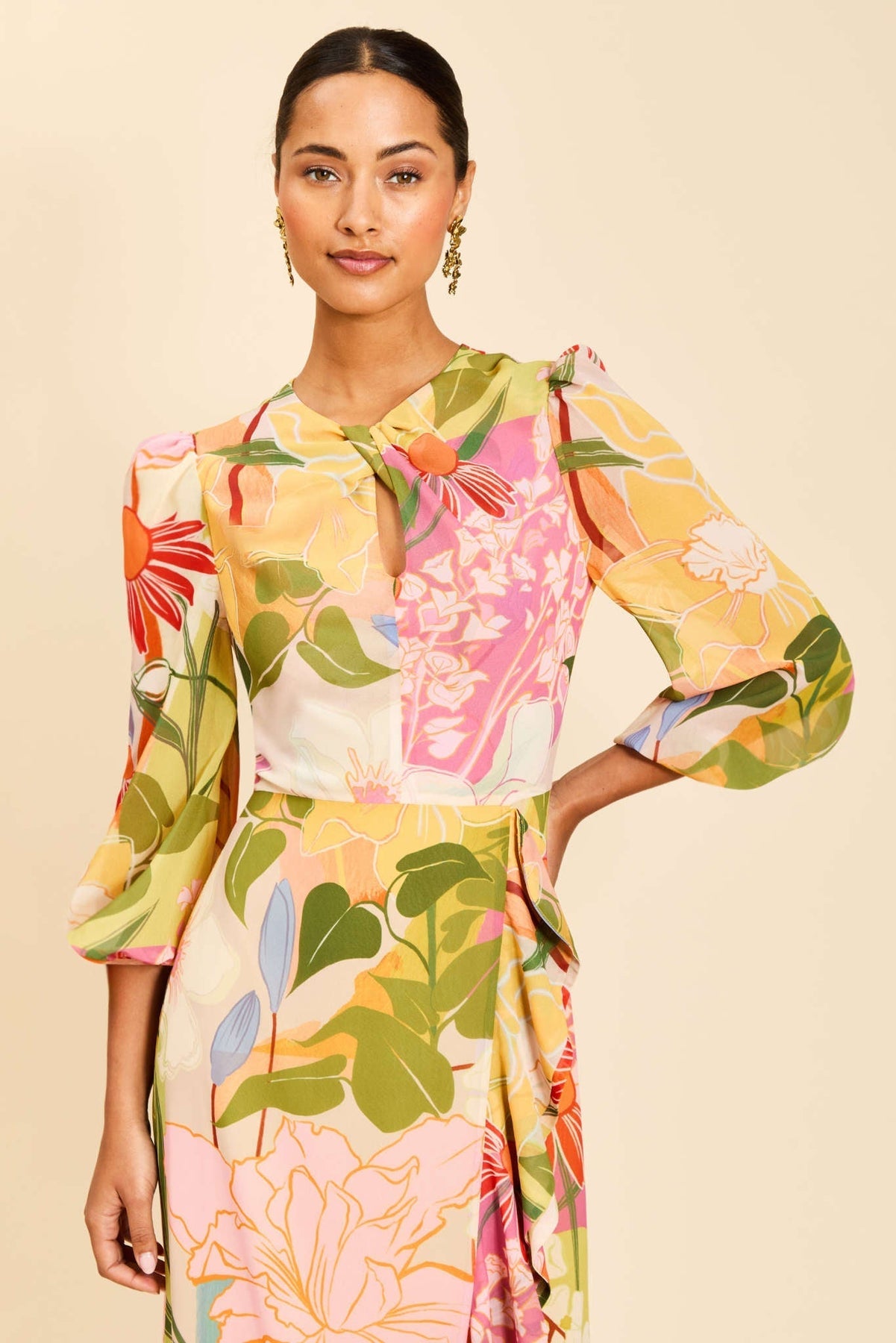• A refined twisted keyhole neckline that feels timeless and romantic