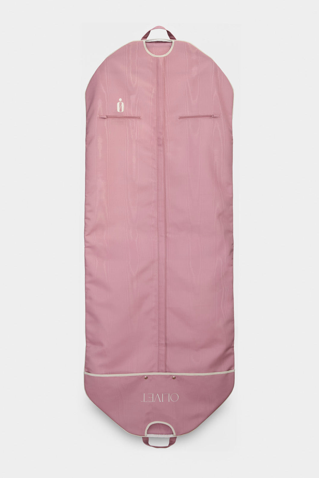 ‘Tis the season to travel beautifully. The Olivet Classic Bag in Blushed Quartz brings a touch of understated glamour to your holiday escapes. A timeless silhouette reimagined in a rosey pink poly moiré, featuring embroidered roses—a subtle celebration of the season—finished with ivory piping and embroidery. Designed to go wherever the celebrations take you, it’s extra-long to accommodate formalwear and features two interior pockets for accessories and essentials. Thoughtfully crafted for effortless travel, it transitions from full-length to half-fold to compact suitcase fold, with handles at each length for easy carrying. For a finishing touch, custom embroidery is available over the right interior pocket—because even your holiday packing deserves a little luxury.