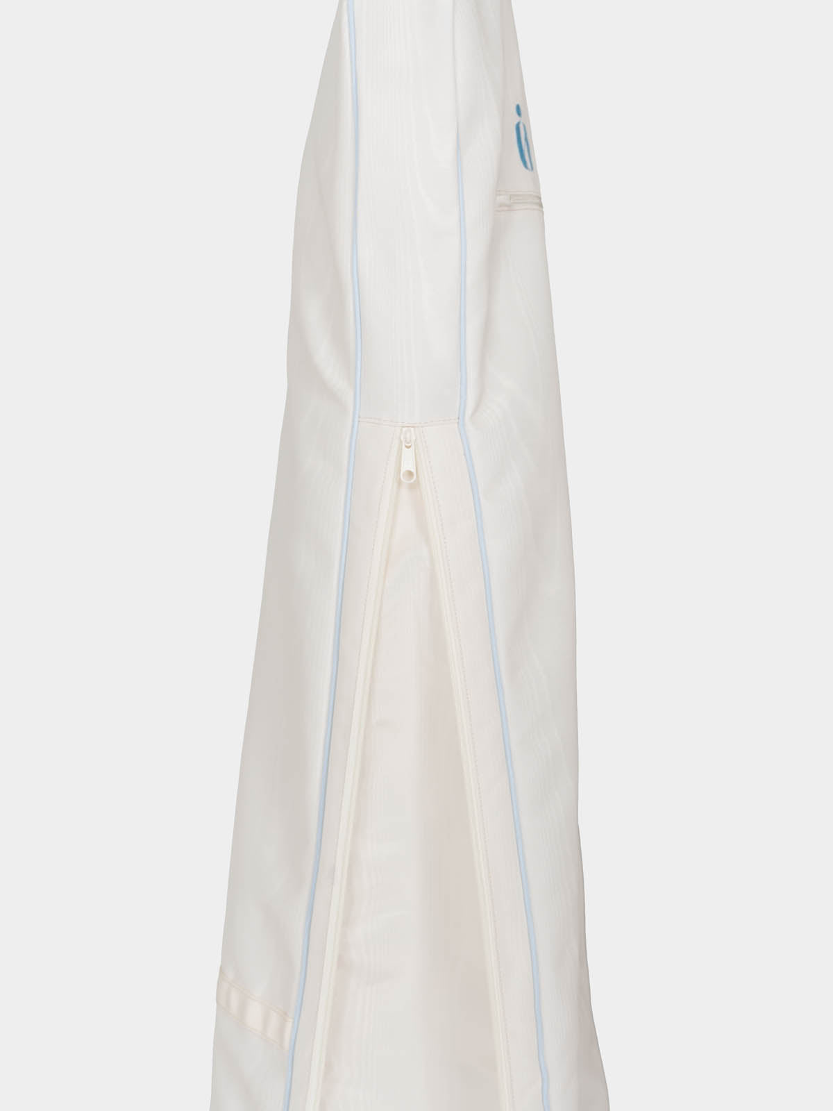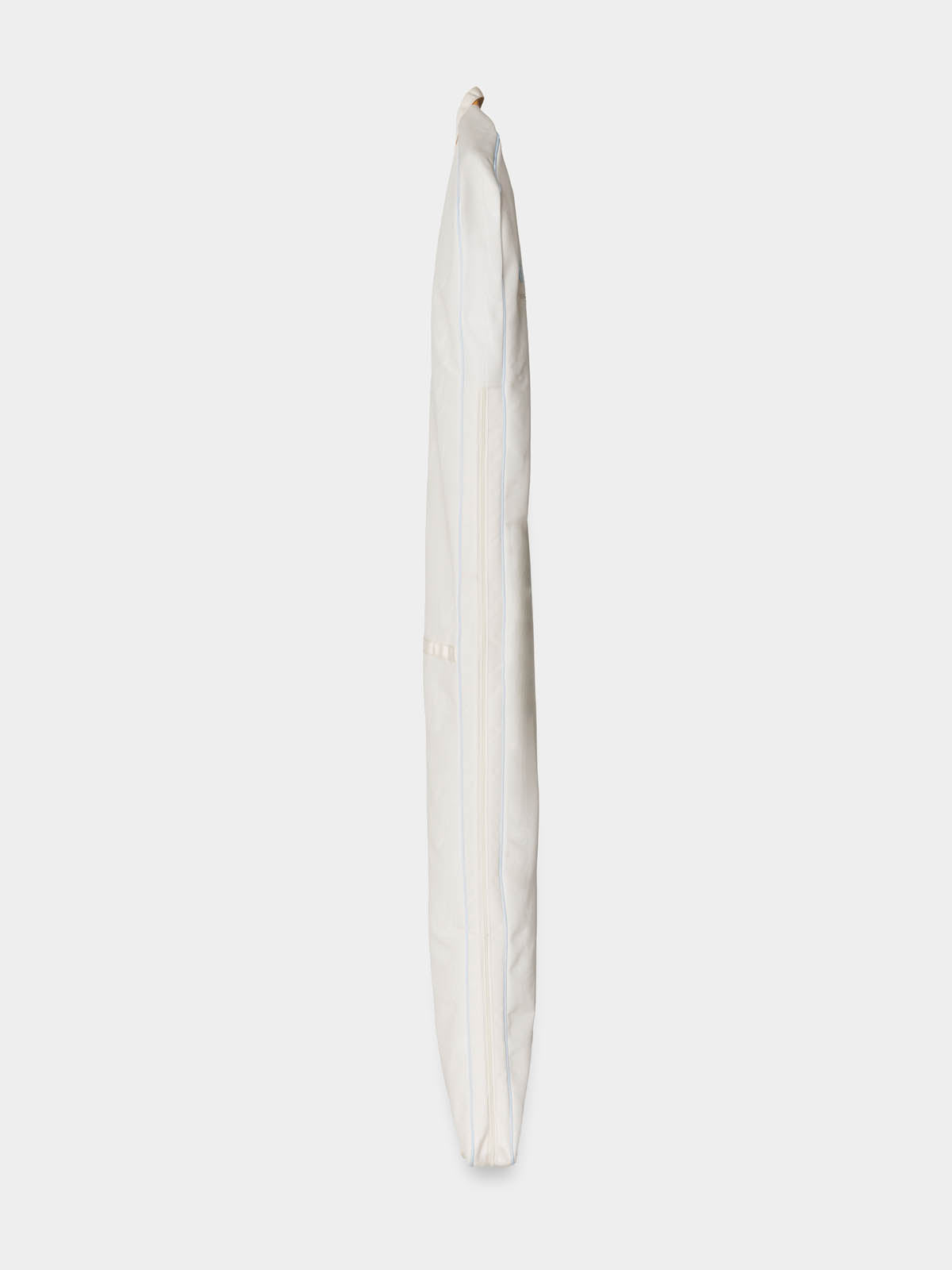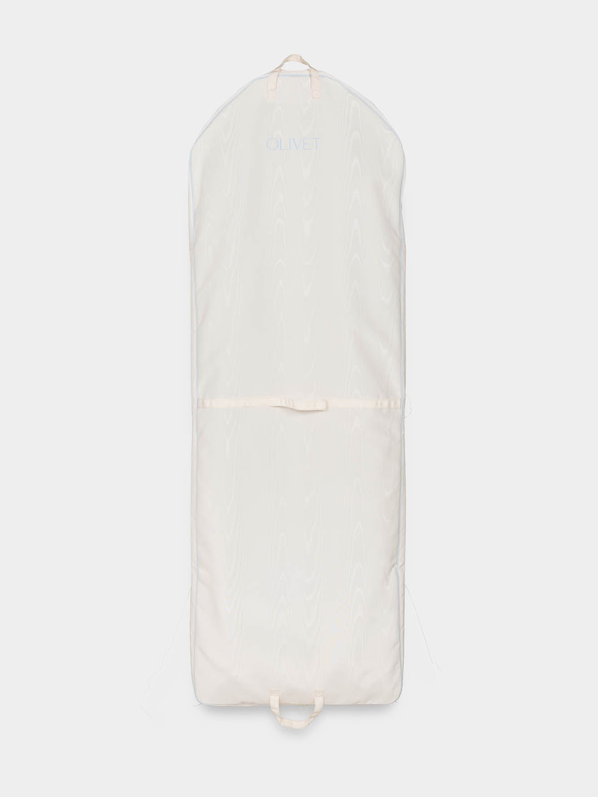 The bridal garment bag you've been dreaming of—designed to protect, transport, and beautifully complement your most important dress. Crafted in luminous ivory poly moiré with a delicate touch of bridal blue piping, The Bridal Bag ensures your gown arrives in perfect condition. The sleek silhouette is perfect for fitted gowns, while an expanding gusset accommodates voluminous skirts with ease. Thoughtfully designed with carry handles for effortless travel and the option for custom embroidery to add a personal touch. A keepsake-worthy essential for any bride and a truly special wedding gift that will be cherished long after the big day.