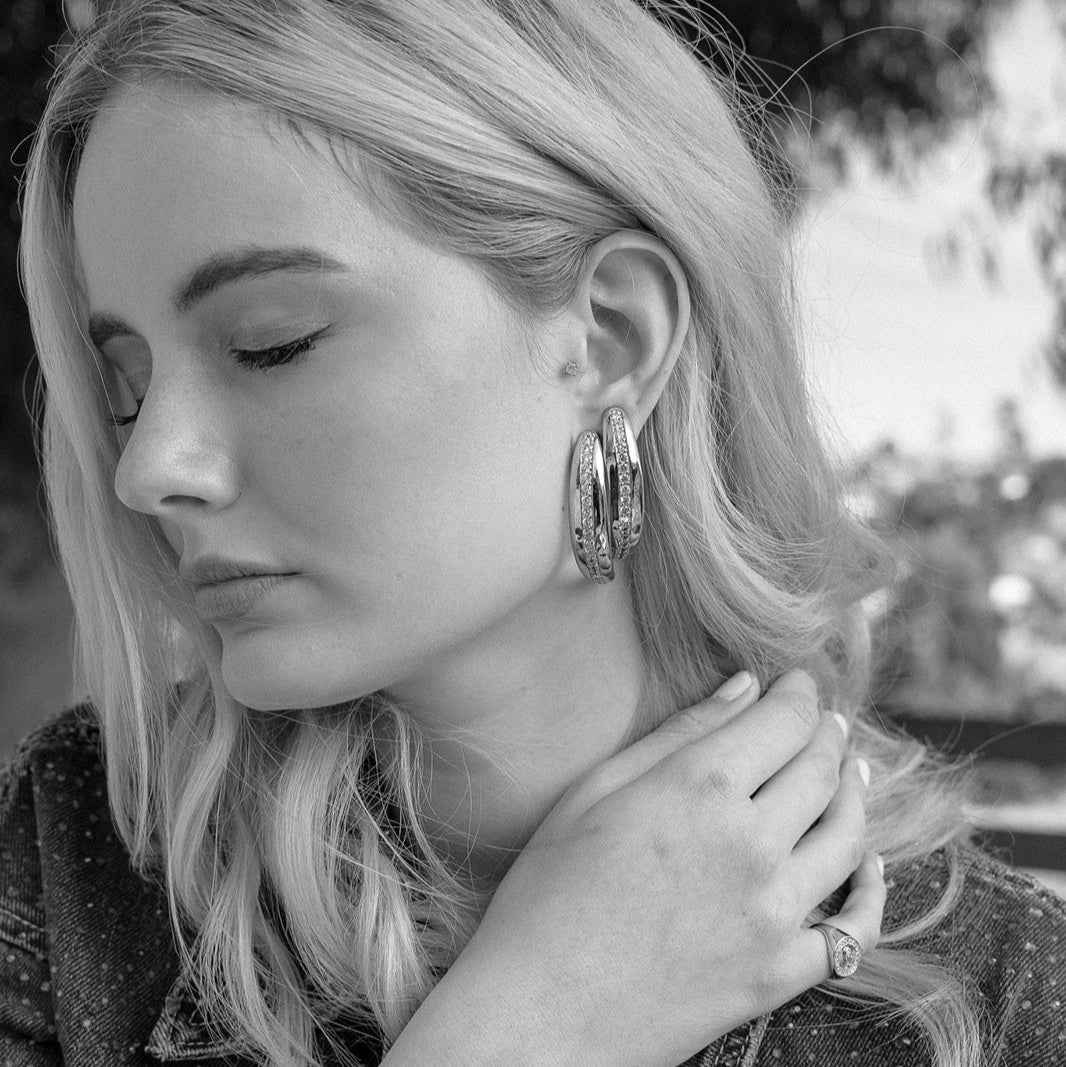 Material: Luminous gold or silver plated brass with pavé-set stones for a subtle sparkle