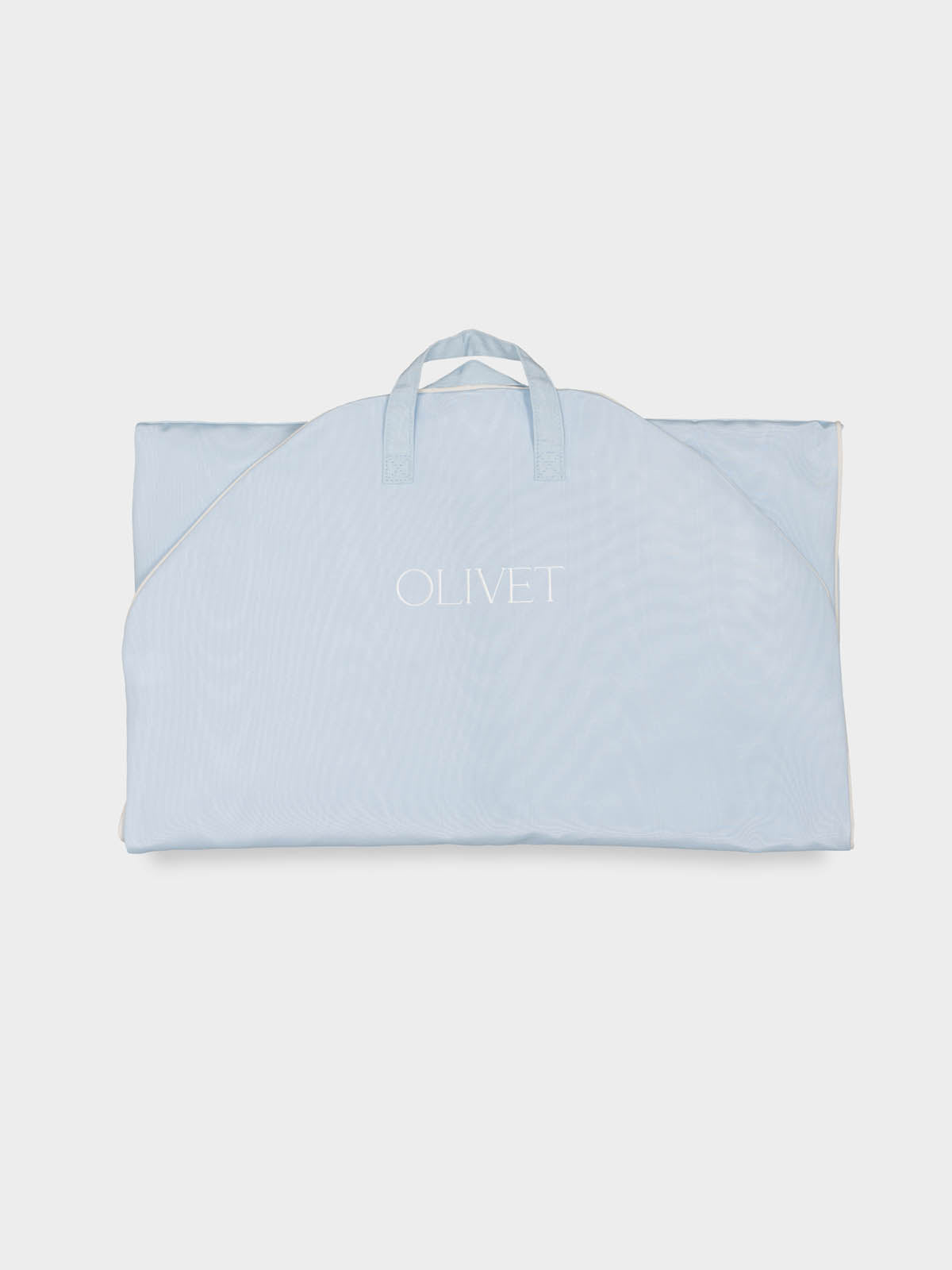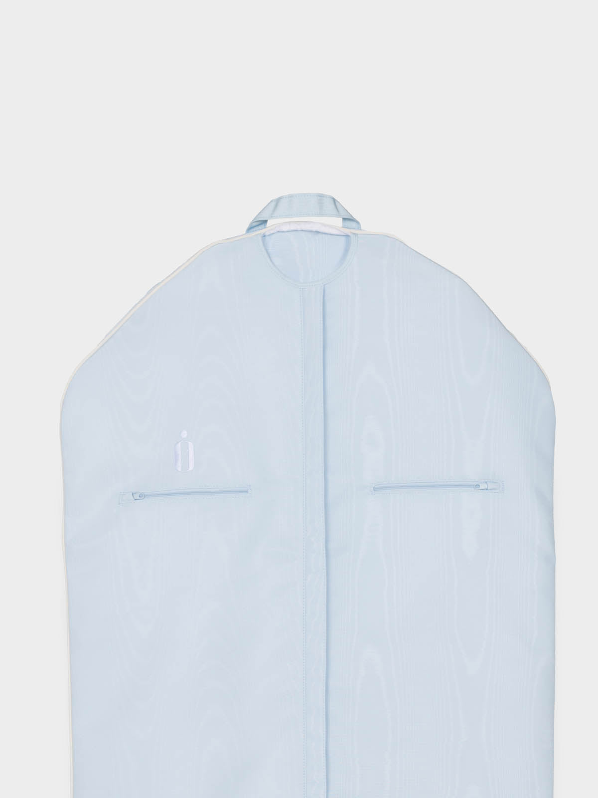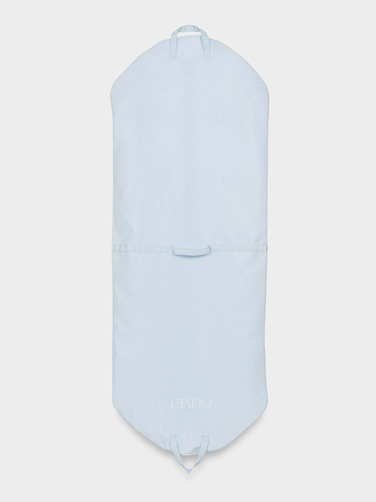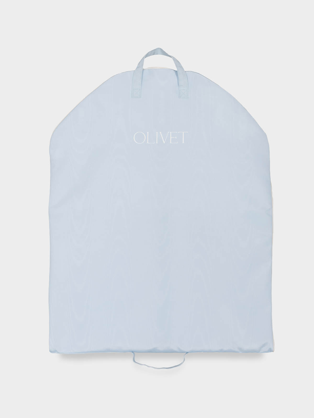 Your wardrobe is stunning—your garment bag should be, too! The Olivet Classic Bag is more than just a garment bag; it’s an extension of your impeccable style. Crafted from beautiful poly moiré with contrasting piping, this bag is as chic as it is functional. Extra-long to accommodate formalwear, it features two interior pockets to keep accessories and essentials neatly tucked away. Thoughtfully designed for seamless travel, it transitions effortlessly from full-length to a half-fold to a compact suitcase fold, with handles at each length for easy carrying. For a personal touch, custom embroidery is available over the right interior pocket—because even your travel essentials should feel like they were made just for you.